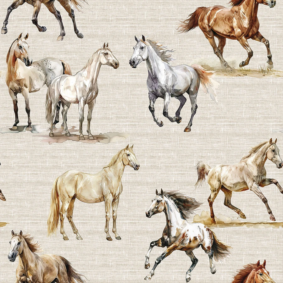 Tkanina dekoracyjna z wzorem koni to doskonały wybór dla miłośników zwierząt. Drukowany na wysokiej jakości podkładzie milas, ten niezwykły wzór dodaje charakteru i indywidualności każdemu pomieszczeniu.