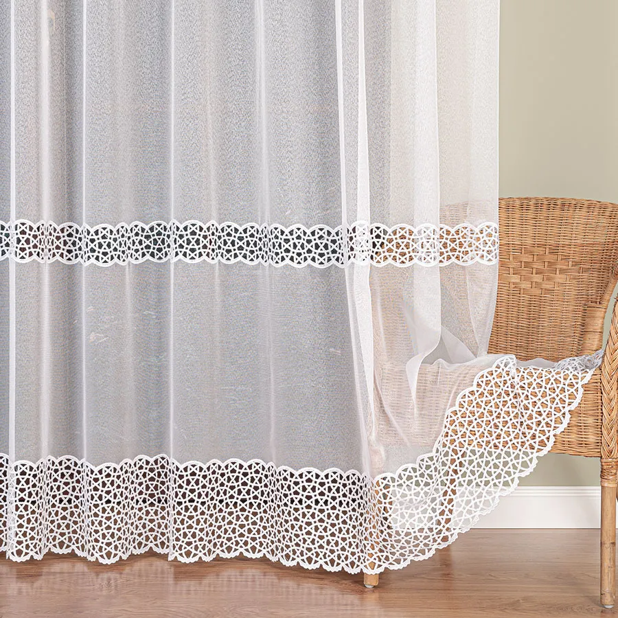 Zależy nam na zadowoleniu Klienta, dlatego wybieramy jedynie najwyższej jakości produkty polskich i zagranicznych producentów. Firanka z aplikacją gipiurową ucinana lub szyta na indywidualne zamówienie! Nie jest to produkt gotowy, dlatego nie ma możliwości odstąpienia od umowy (zwrotu, ani wymiany), dlatego prosimy o przemyślane zakupy.