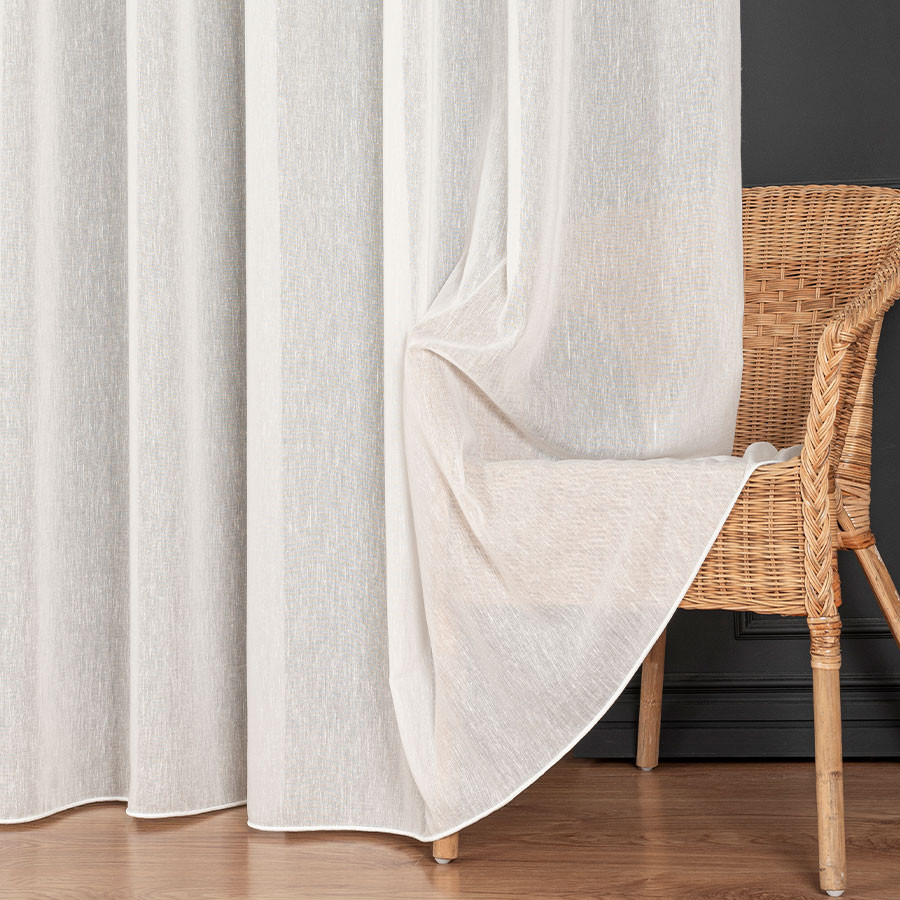 Struktura płótna we firance TIFFANY nadaje jej klasycznego charakteru, który pasuje zarówno do nowoczesnych, jak i tradycyjnych wnętrz.