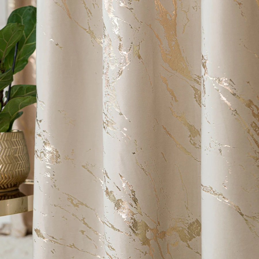 MARMA · Zasłona gotowa na taśmie · 140x250cm · kolor jasny kremowy ze złotym nadrukiem