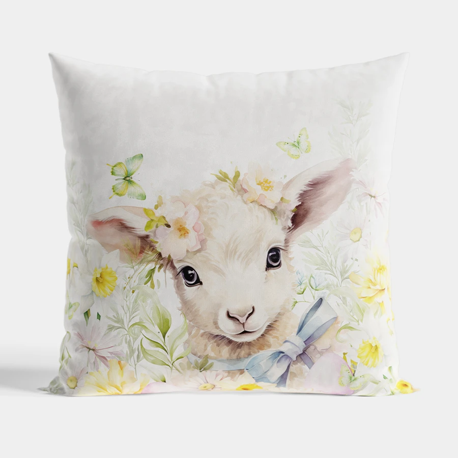 Poszewka dekoracyjna velvet BARANEK W KWIATACH