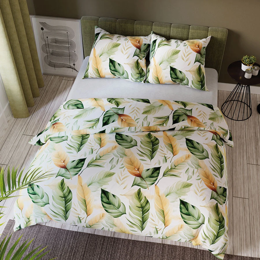 - Naturalny design: Wzór liści w stonowanych odcieniach zieleni i beżu wprowadza do sypialni naturalny, relaksujący klimat.