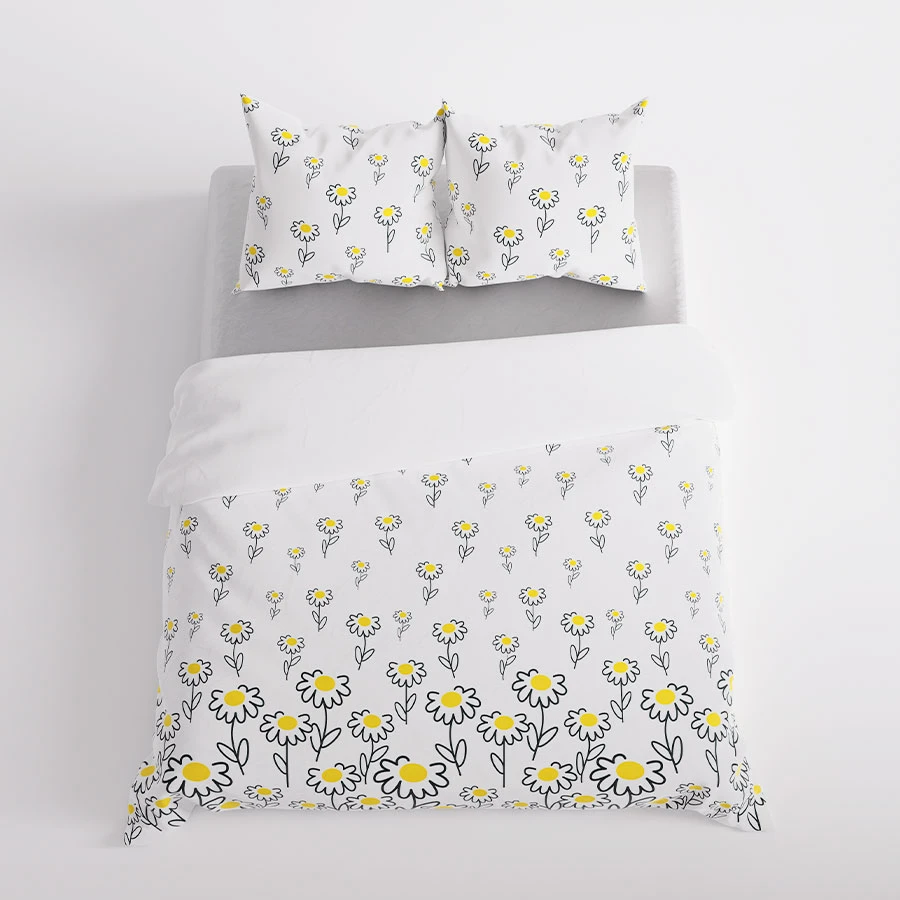 Wprowadź do swojej sypialni lekkość i pozytywną energię z kompletem pościeli BELLIS! Delikatny, biały materiał ozdobiony uroczymi stokrotkami nadaje wnętrzu przytulnego i pogodnego charakteru. Pościel doskonale pasuje do wnętrz w stylu skandynawskim, boho oraz klasycznym, dodając im subtelnej świeżości i ciepła.