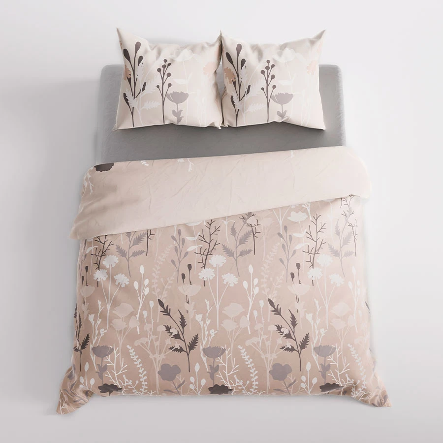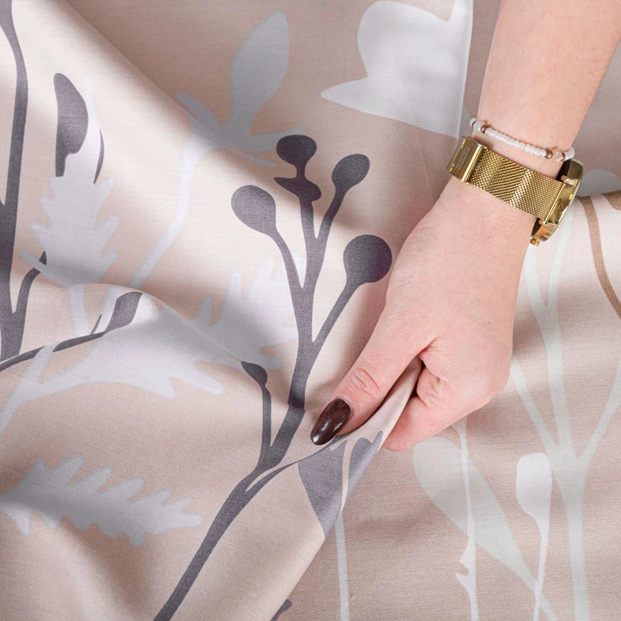 Pościel CLEO to połączenie minimalizmu i romantycznej elegancji. Subtelne kwiatowe motywy w odcieniach beżu, szarości i fioletu na delikatnym tle wprowadzają do sypialni spokojny i przytulny klimat. Doskonała do wnętrz w stylu boho, skandynawskim, rustykalnym i klasycznym, gdzie dominuje ciepło naturalnych barw.