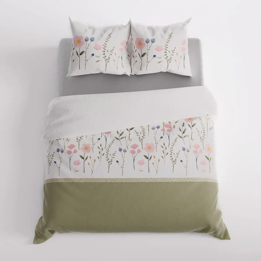 Pościel FABLE to propozycja dla miłośników spokoju, lekkości i naturalnego designu. Połączenie głębokiej zieleni z subtelnym florystycznym wzorem na jasnym tle wprowadza do wnętrza delikatność i harmonię. Idealna do aranżacji w stylu boho, rustykalnym, skandynawskim i klasycznym, gdzie królują naturalne barwy i motywy roślinne.