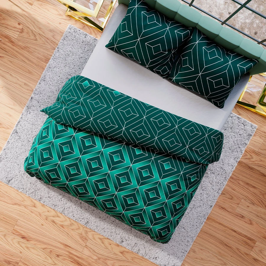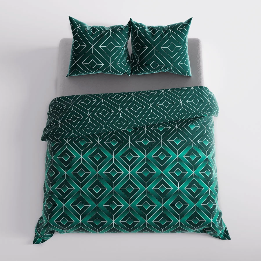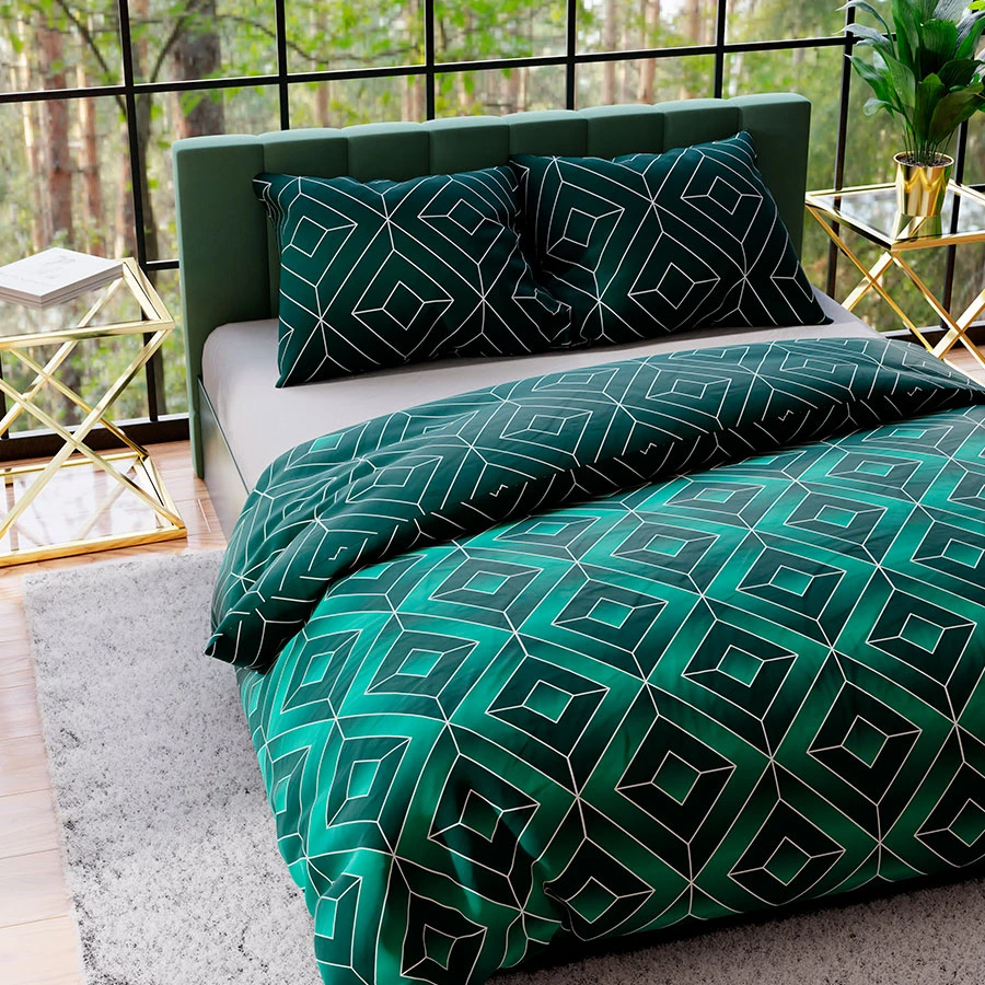 Zanurz się w wyrafinowanym stylu pościeli SAPHIRA! Głęboka, butelkowa zieleń w połączeniu z geometrycznym wzorem nadaje wnętrzu nowoczesnego, odważnego i eleganckiego charakteru. Idealna do sypialni w stylu glamour, loft, industrialnym oraz minimalistycznym, gdzie liczy się wyjątkowy design i ponadczasowy szyk.