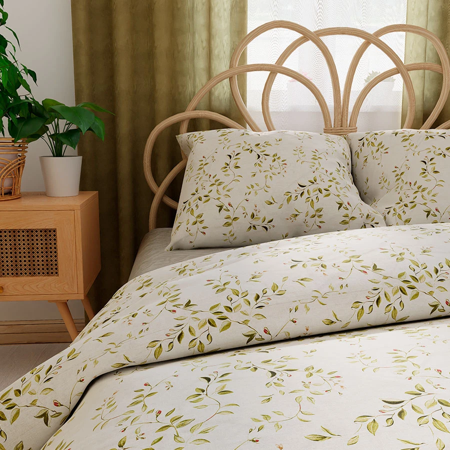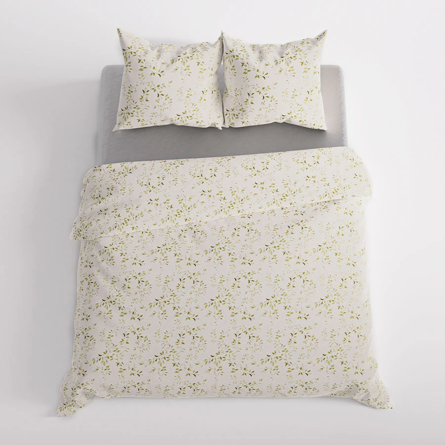 Pościel ORLINA to idealne połączenie naturalnej estetyki i luksusowego komfortu. Delikatny biały odcień z subtelnym roślinnym wzorem w odcieniach zieleni dodaje wnętrzu lekkości i harmonii, wprowadzając atmosferę spokoju i przytulności. Doskonale komponuje się z wnętrzami w stylu boho, skandynawskim, rustykalnym i klasycznym.