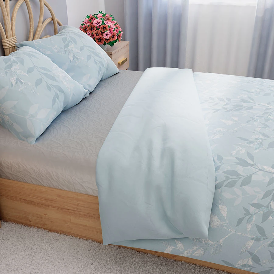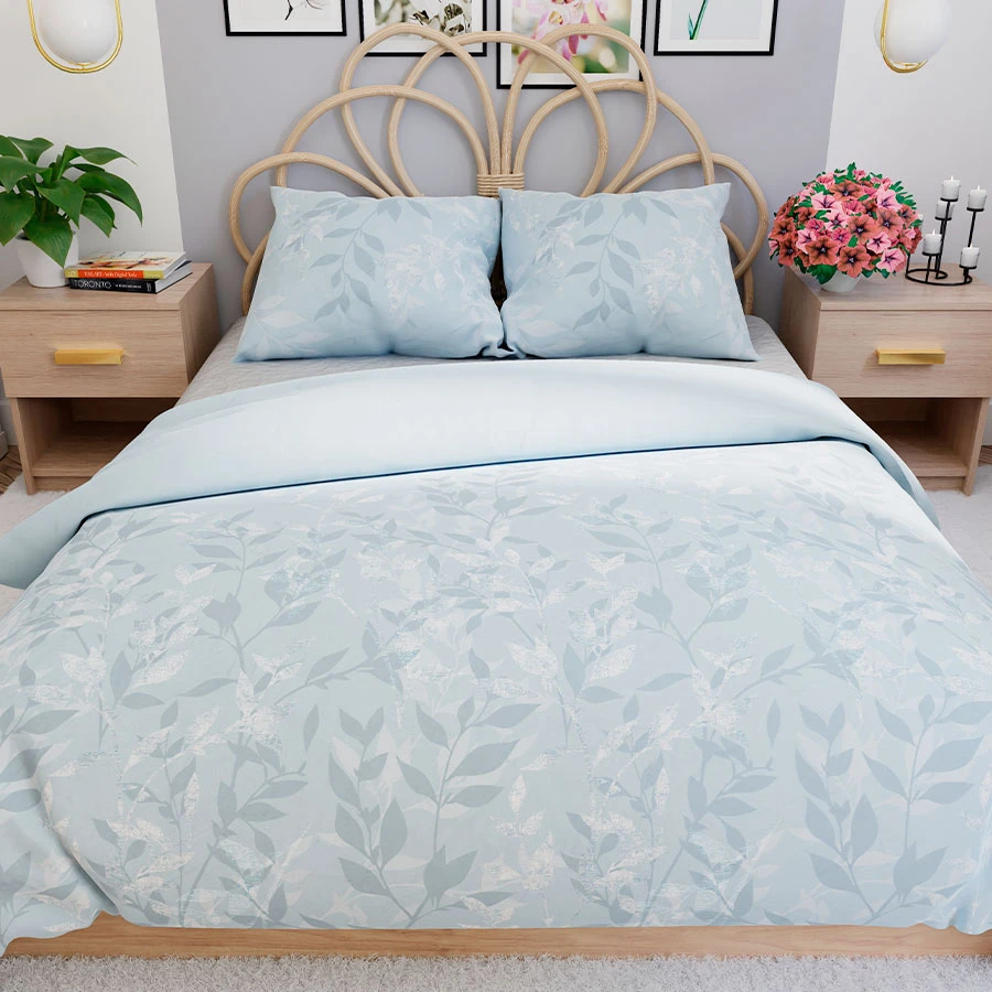 Zanurz się w atmosferze spokoju i harmonii dzięki pościeli LILU! Jej delikatny błękitny kolor i subtelny roślinny wzór dodają wnętrzu lekkości, świeżości i elegancji. Idealna dla osób ceniących minimalistyczne, skandynawskie i klasyczne wnętrza, które stawiają na przytulny, ale stylowy design.