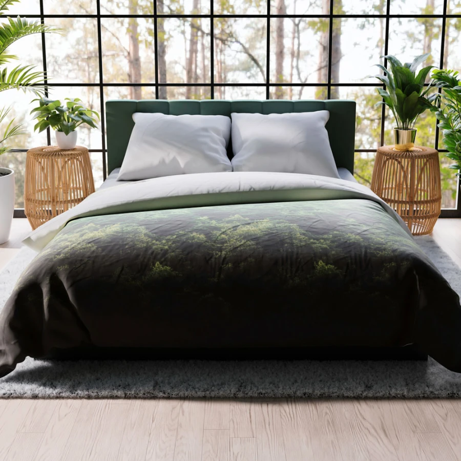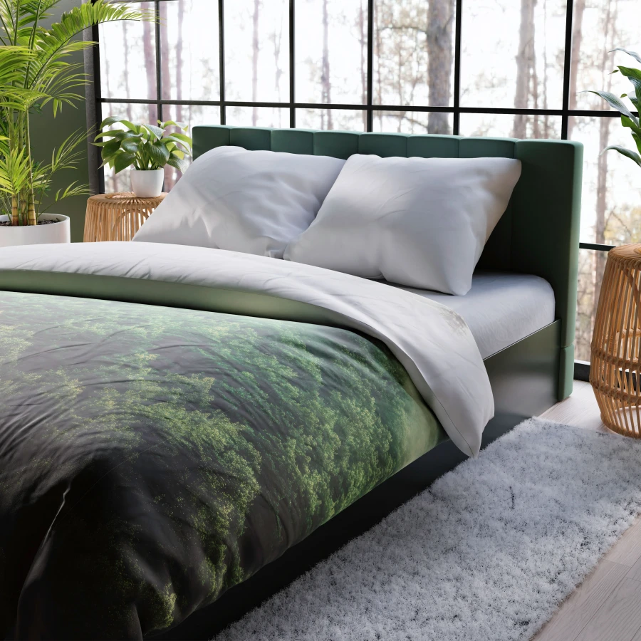Otwórz oczy i przenieś się do magicznej leśnej scenerii! Pościel FOREST zachwyca realistycznym nadrukiem bujnej zieleni, tworząc atmosferę spokoju, świeżości i harmonii. Idealna dla miłośników natury oraz wnętrz w stylu eko, boho, skandynawskim i nowoczesnym.
