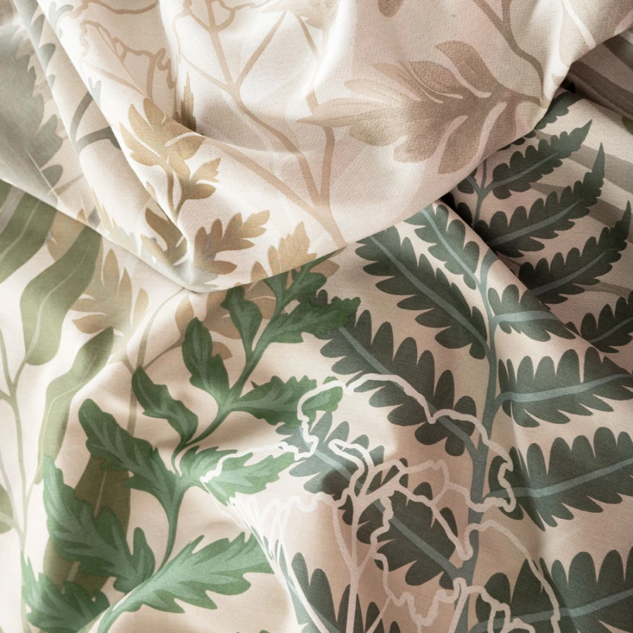 Zanurz się w kojącym otoczeniu natury z pościelą FERNA! Delikatny botaniczny wzór w odcieniach zieleni i beżu sprawia, że sypialnia nabiera harmonijnego, relaksującego charakteru. Liście paproci i subtelne akcenty roślinne dodają wnętrzu świeżości, idealnie wpisując się w aranżacje boho, skandynawskie, rustykalne i eko.