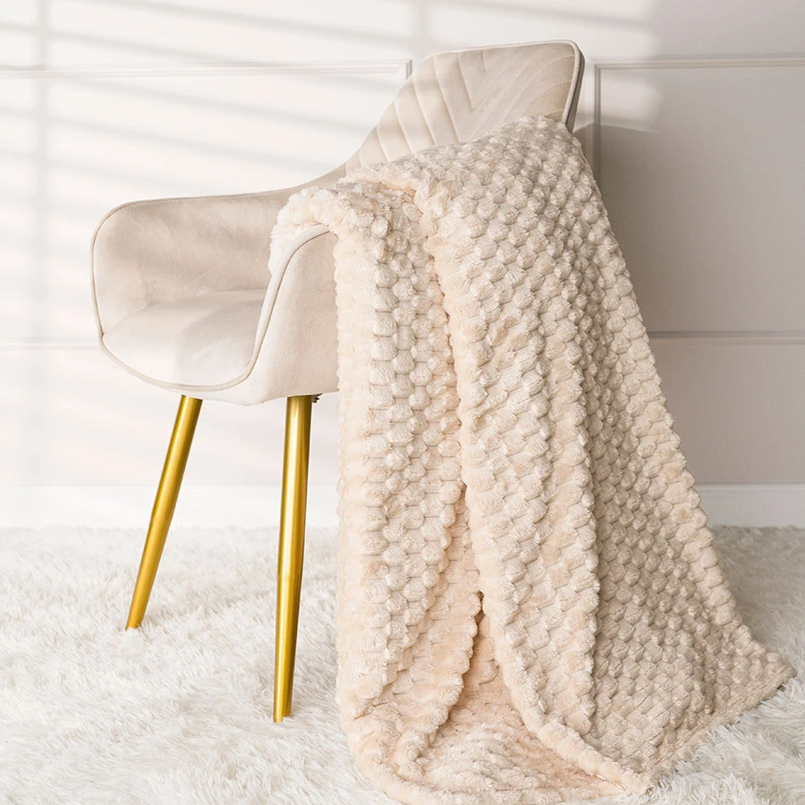 Beżowy koc MIKOS - idealny do Twojego wnętrza 🏠