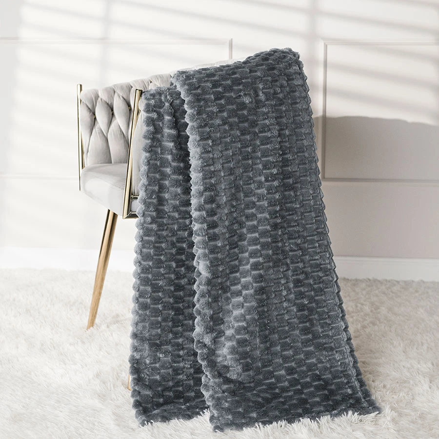 Koc MIKOS został wykonany z wysokiej jakości materiału, który jest niezwykle miękki i przyjemny w dotyku. Jego strukturalny wzór dodaje mu elegancji, a ciemnoszary kolor sprawia, że pasuje do wielu stylów wnętrzarskich. To doskonały wybór dla osób ceniących sobie komfort i wyrafinowany design.