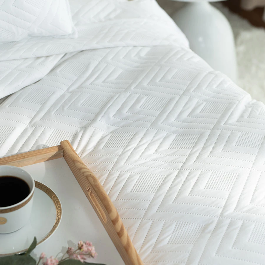 Narzuta AVILA w śnieżnobiałym odcieniu to kwintesencja elegancji i świeżości. Jej unikalny, geometryczny wzór nadaje jej nowoczesnego charakteru i czyni ją niezwykle przyjemną w dotyku. Wykonana z wysokiej jakości materiału, narzuta otuli Cię miękkością i zapewni komfortowy wypoczynek. Doskonale sprawdzi się jako element dekoracyjny sypialni urządzonej w stylu minimalistycznym, skandynawskim lub glamour. Jej uniwersalny kolor i subtelny wzór łatwo dopasować do różnorodnych aranżacji wnętrz.
