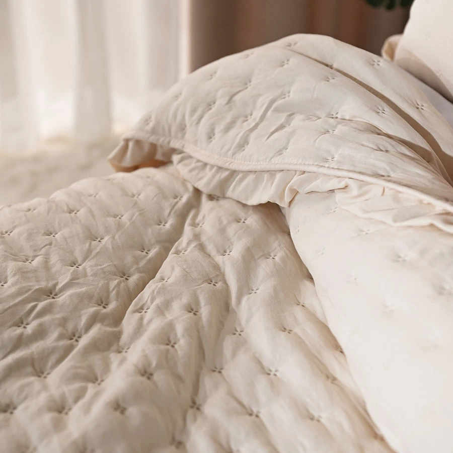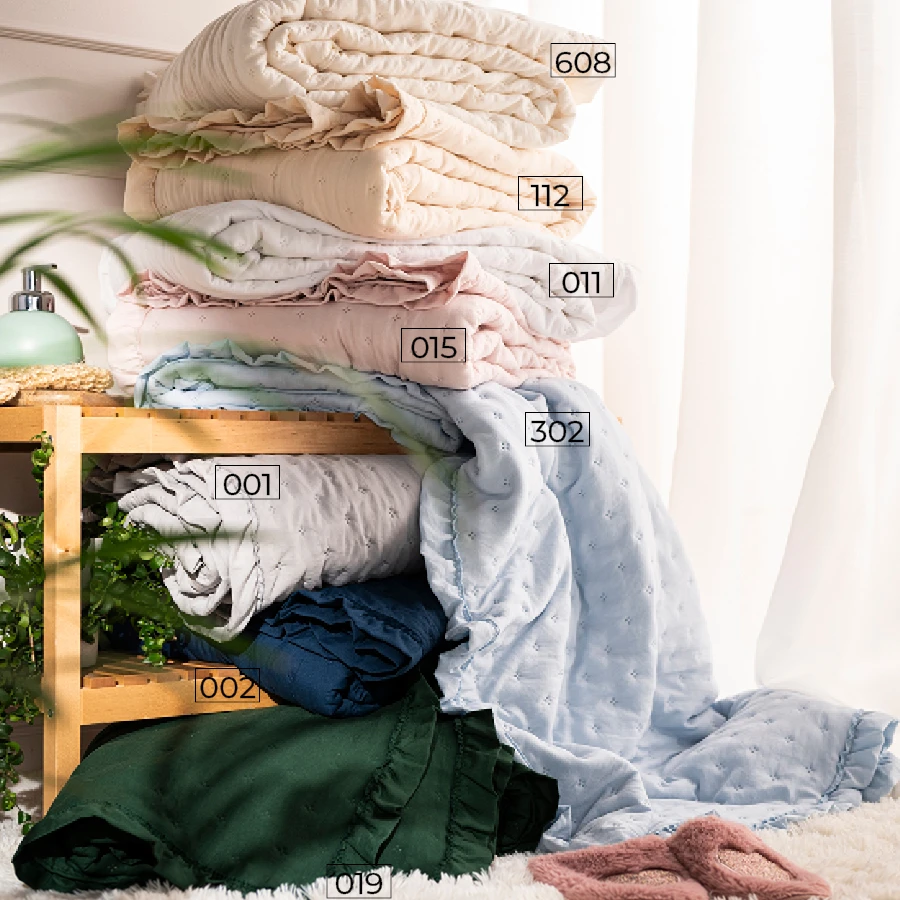 Narzuta WERONA zachwyca swoją delikatnością i elegancją. Ciepły, beżowy kolor wprowadza do sypialni kojącą i przytulną atmosferę, idealną do relaksu po ciężkim dniu. Romantyczna falbana dodaje narzucie lekkości i uroku, a pikowany wzór nadaje jej trójwymiarowości. Materiał jest miękki i przyjemny w dotyku, co sprawia, że narzuta jest idealna do otulenia się w chłodne wieczory.