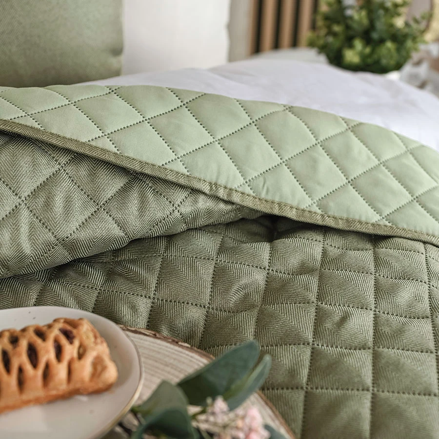 Wprowadź świeżość i elegancję do swojej sypialni z narzutą JODEŁKA w odcieniu szarozielonym 🌿