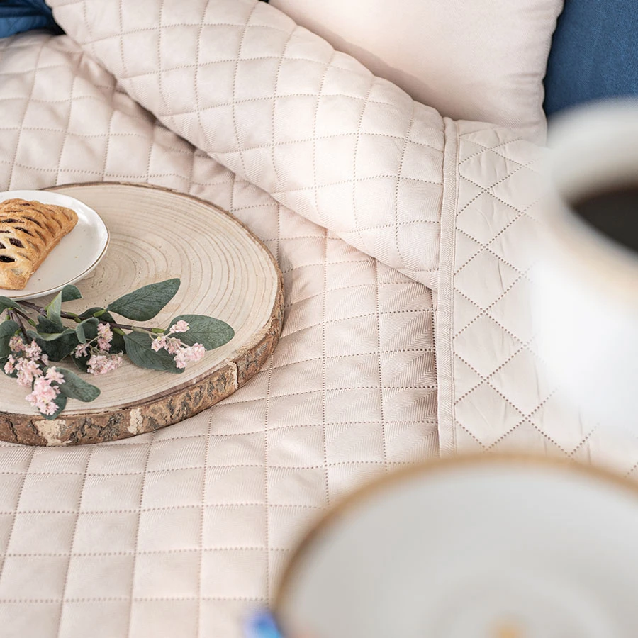 Wprowadź spokój i elegancję do swojej sypialni z narzutą JODEŁKA w odcieniu jasnego beżu 🕊️