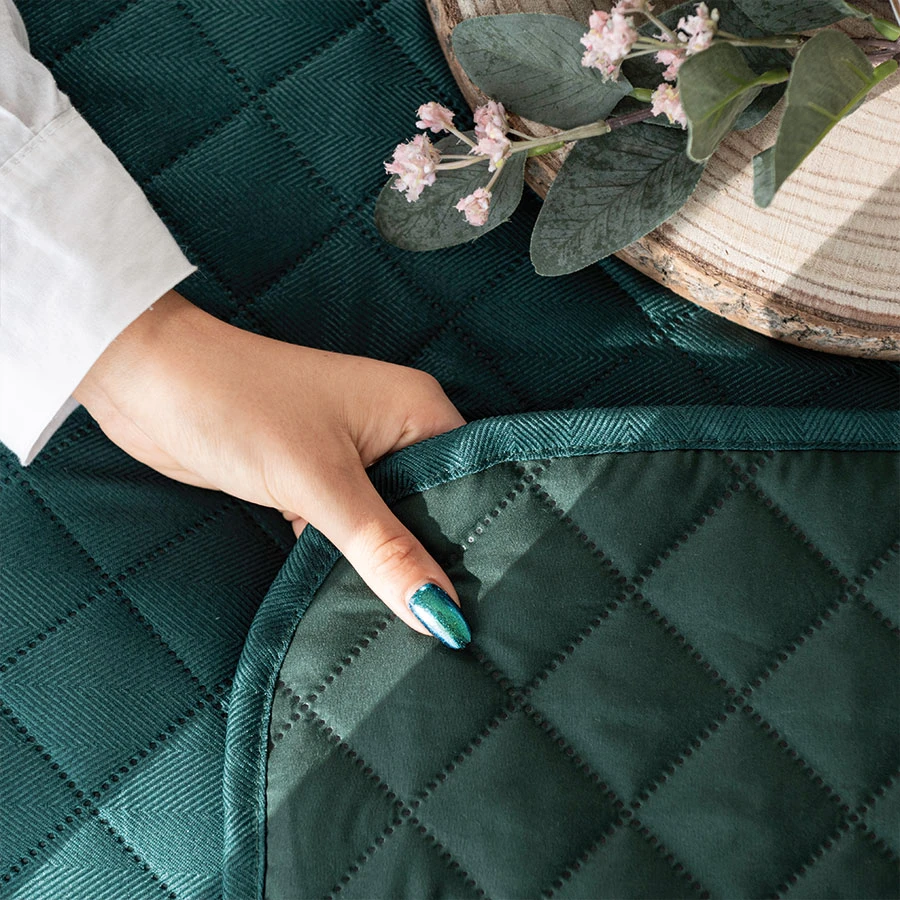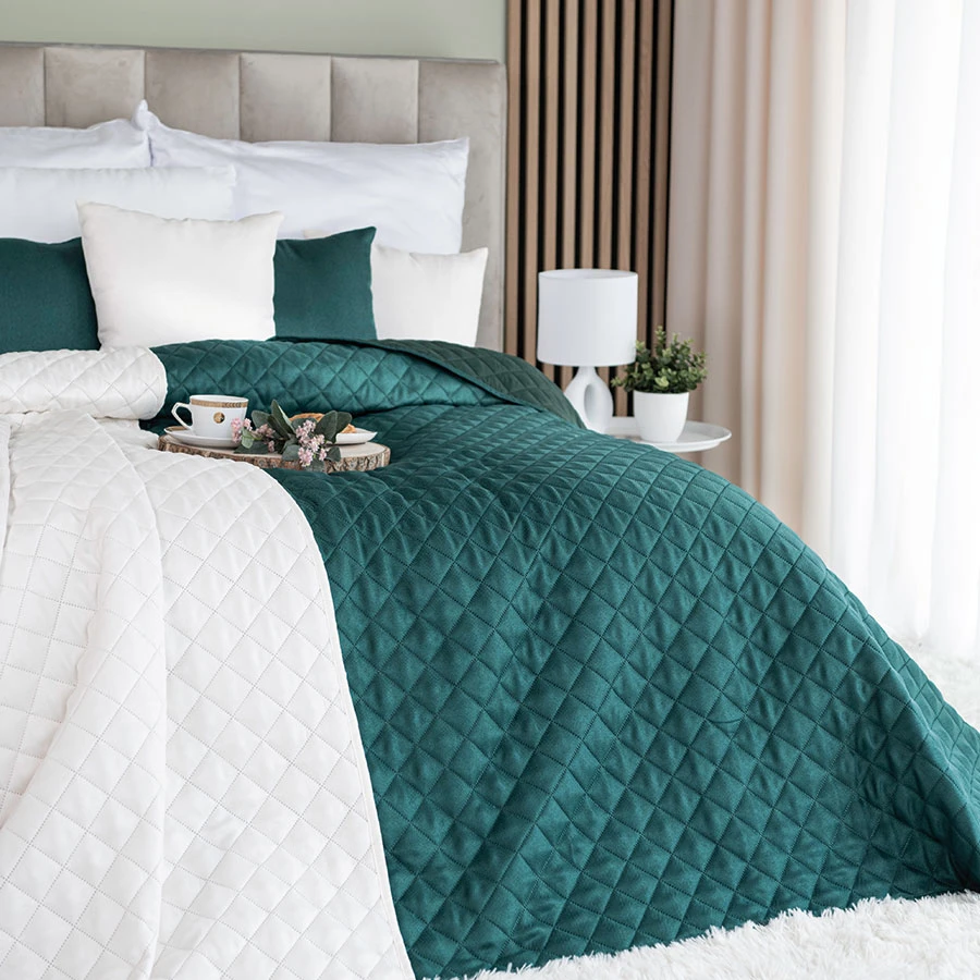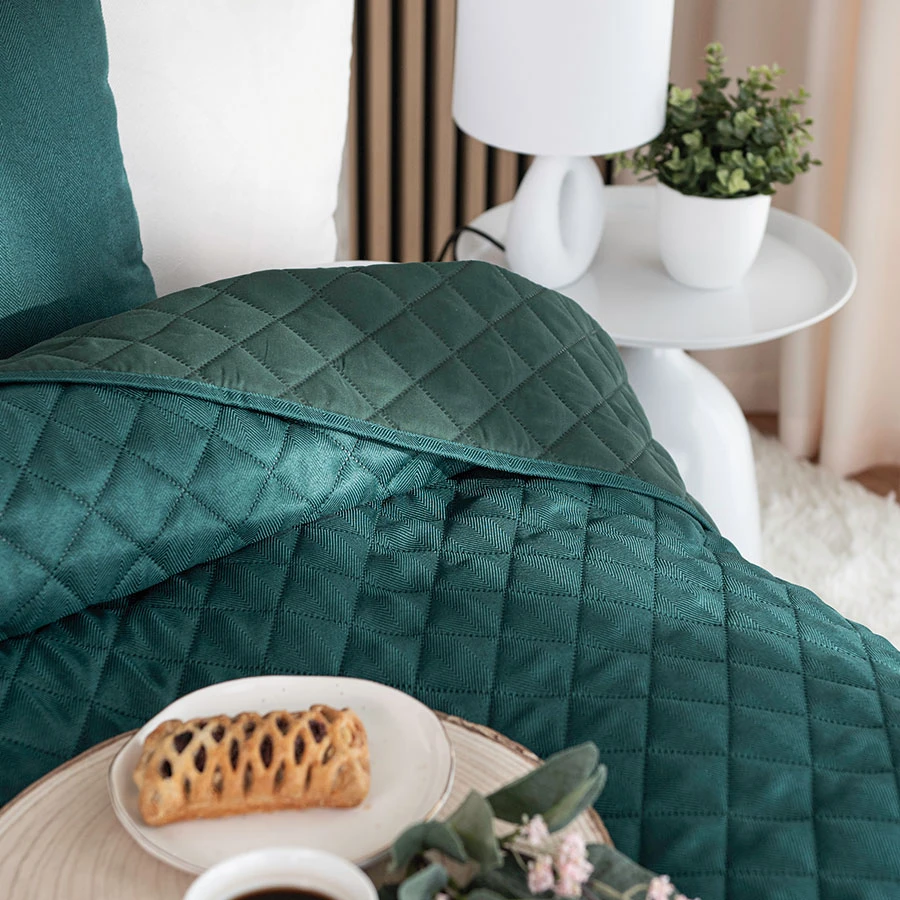 Wprowadź głębię koloru do swojej sypialni z narzutą JODEŁKA w odcieniu butelkowej zieleni 💚