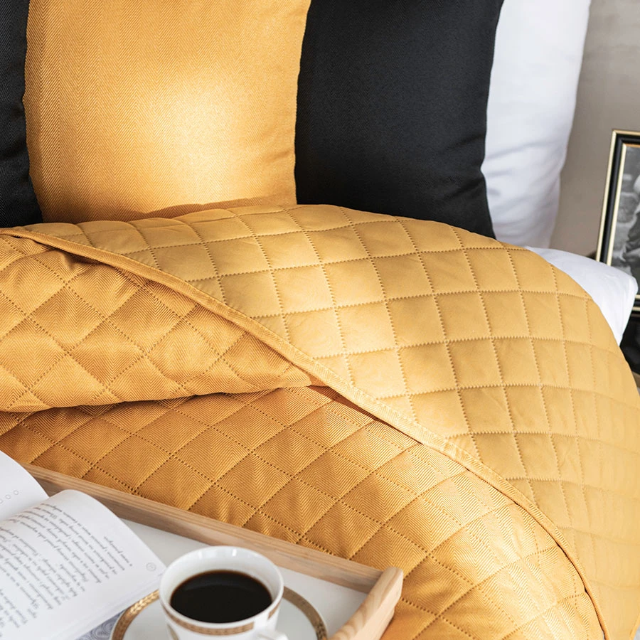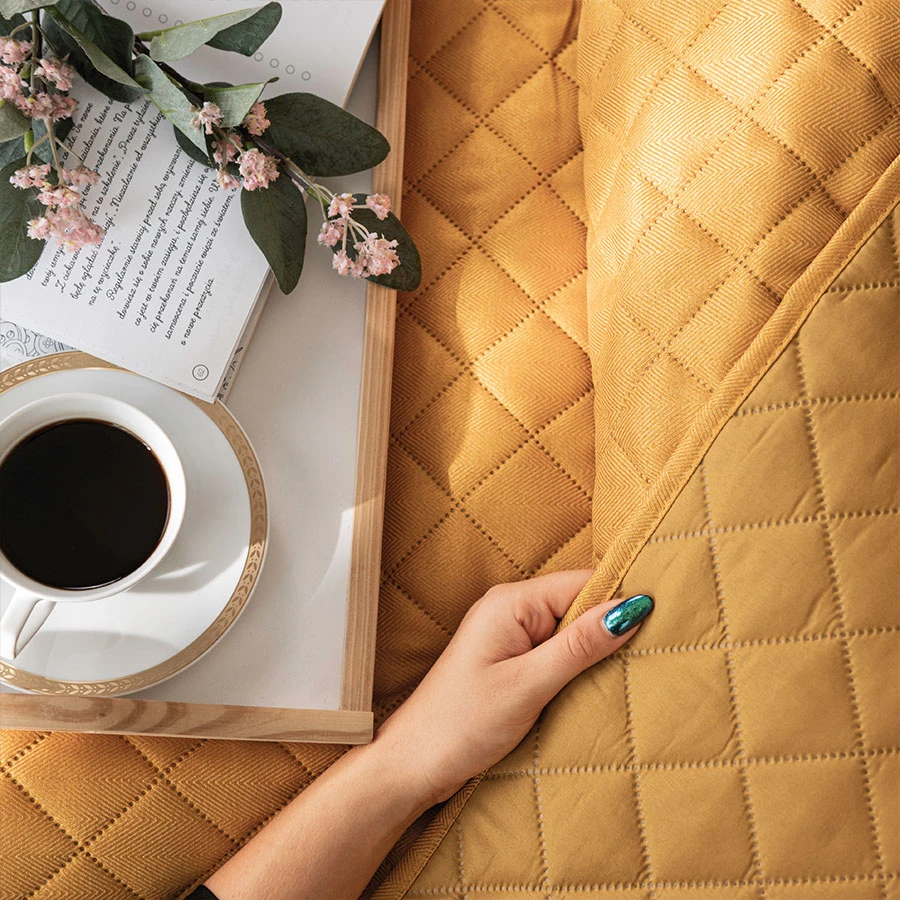 Dodaj słońca do swojej sypialni z narzutą JODEŁKA w odcieniu musztardowym ☀️