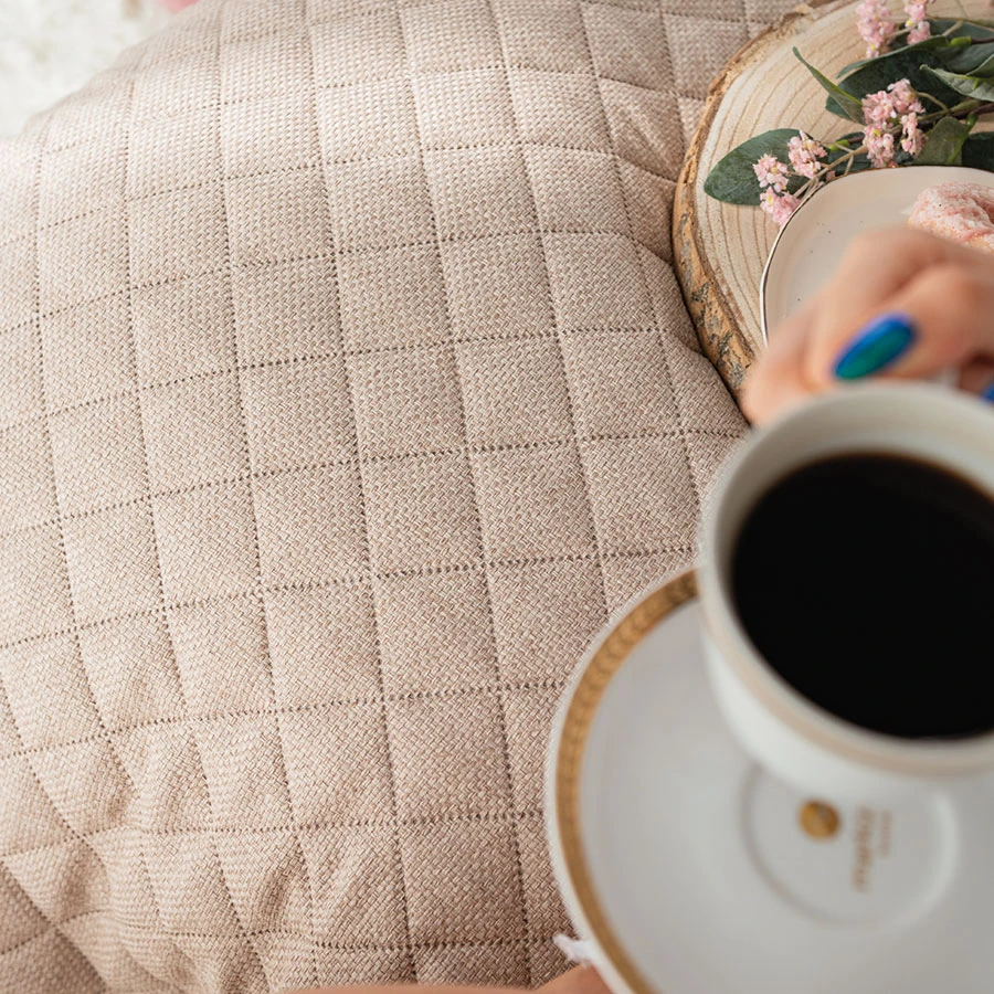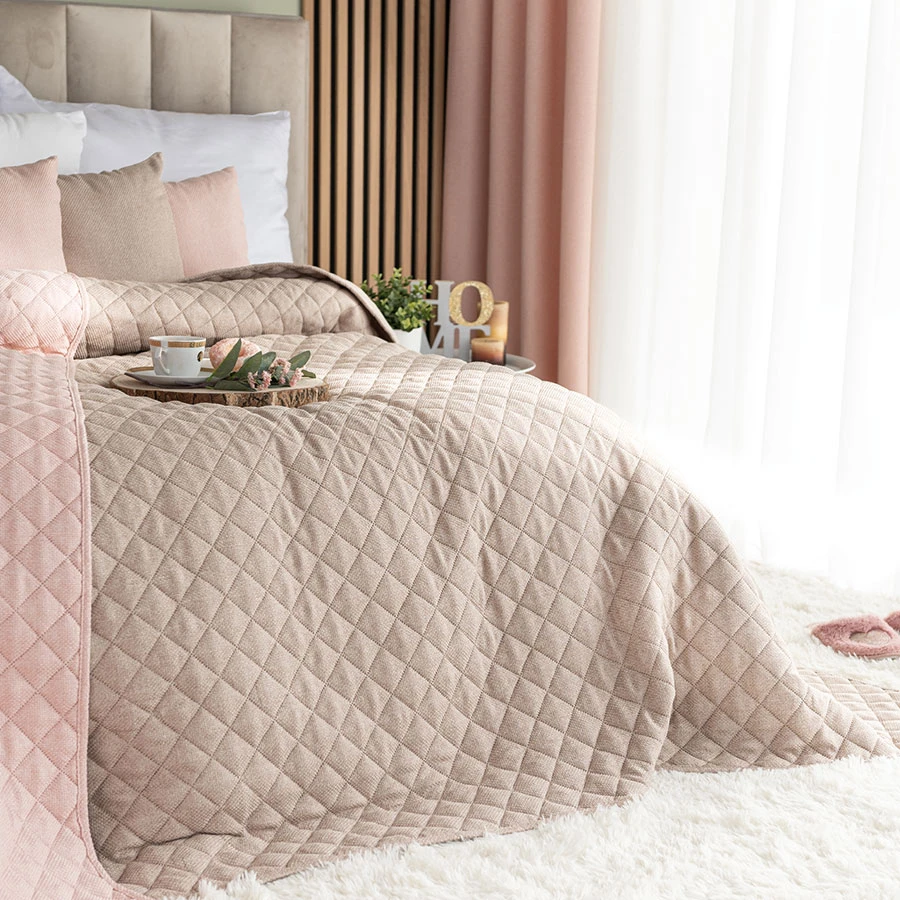 Narzuta MOLLY to nie tylko komfort, ale również wyjątkowy design. Delikatny pikowany wzór dodaje jej elegancji i podkreśla wysoką jakość wykonania. Ciemny beżowy odcień doskonale komponuje się z różnorodnymi stylami wnętrzarskimi – od klasycznych po nowoczesne. Narzuta będzie idealnym uzupełnieniem aranżacji sypialni, dodając jej przytulności, ale także świetnie sprawdzi się w salonie jako stylowy dodatek do sofy lub fotela.