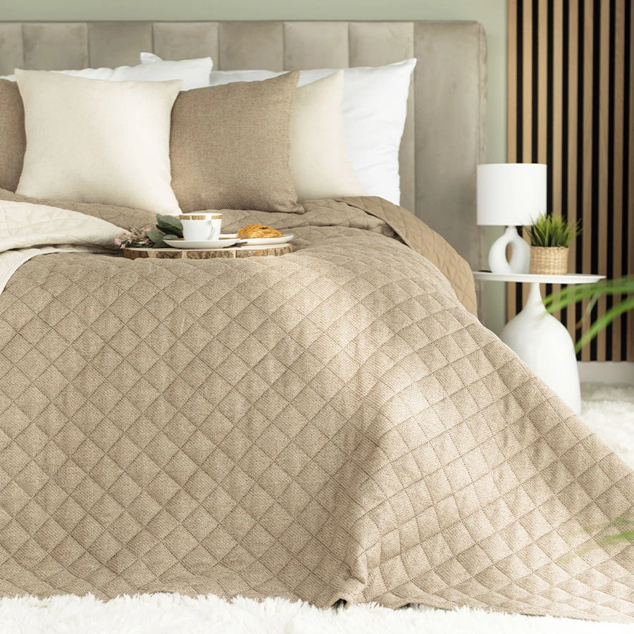 Narzuta MOLLY to nie tylko komfort, ale również wyjątkowy design. Delikatny wzór pikowania dodaje jej elegancji i podkreśla staranność wykonania. Kawowy kolor doskonale komponuje się z różnorodnymi stylami wnętrzarskimi – od klasycznych po nowoczesne. Narzuta będzie idealnym uzupełnieniem aranżacji sypialni, dodając jej luksusowego charakteru, ale także świetnie sprawdzi się w salonie jako stylowy dodatek do sofy lub fotela.