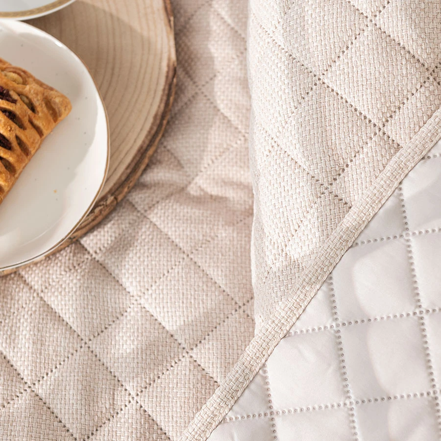 Narzuta wykonana jest z przyjemnego w dotyku materiału, który otuli Cię miękkością i zapewni komfortowy wypoczynek po całym dniu. Jej geometryczny wzór pikowania dodaje jej uroku, a ciepły beżowy kolor optycznie ociepla pomieszczenie, tworząc idealne miejsce do relaksu.