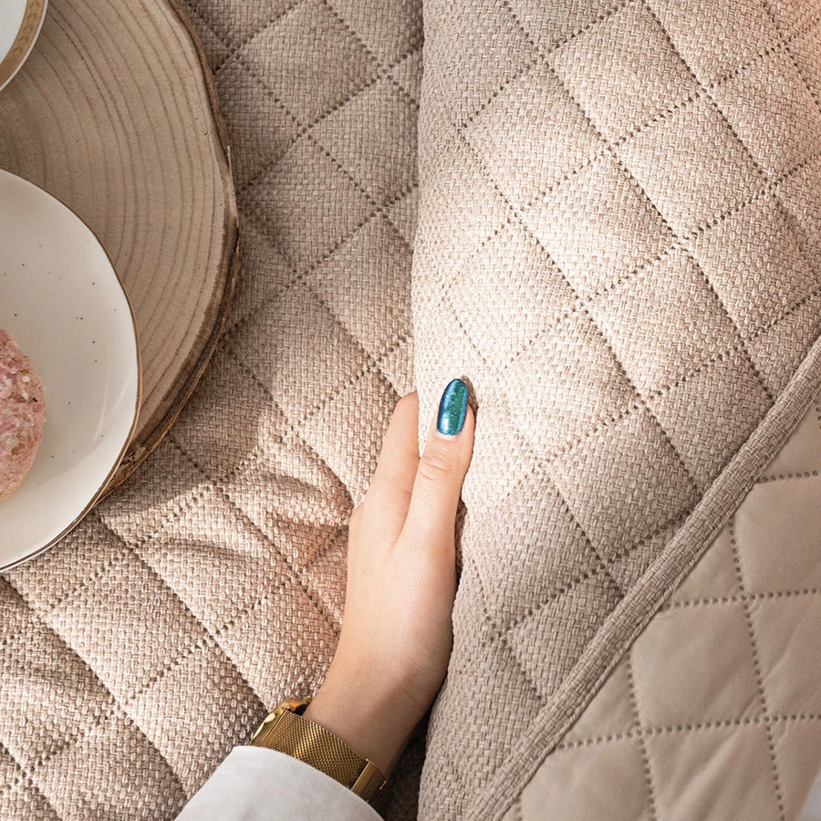 Narzuta MOLLY zachwyca swoją prostotą i elegancją. Pikowana struktura dodaje jej trójwymiarowości i sprawia, że narzuta prezentuje się niezwykle stylowo. Uniwersalny kolor ciemnego beżu pasuje do każdego wnętrza, od klasycznego po nowoczesne. Narzuta jest nie tylko piękna, ale także praktyczna – chroni pościel przed kurzem i zabrudzeniami, ułatwiając utrzymanie porządku w sypialni.