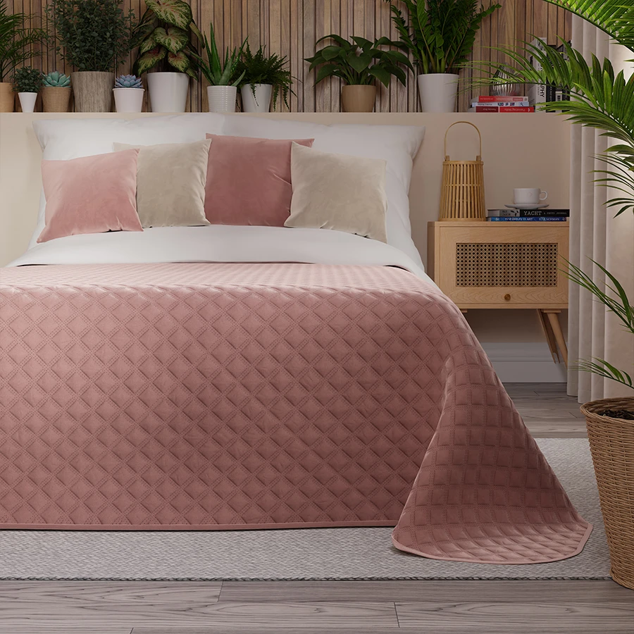 Dzięki swojej aksamitnej fakturze, narzuta VELVI jest niezwykle miła w dotyku. Każde muśnięcie dłonią to czysta przyjemność, która relaksuje i koi zmysły. Pikowany wzór w romby dodaje jej elegancji i sprawia, że staje się ona centralnym punktem sypialni.
