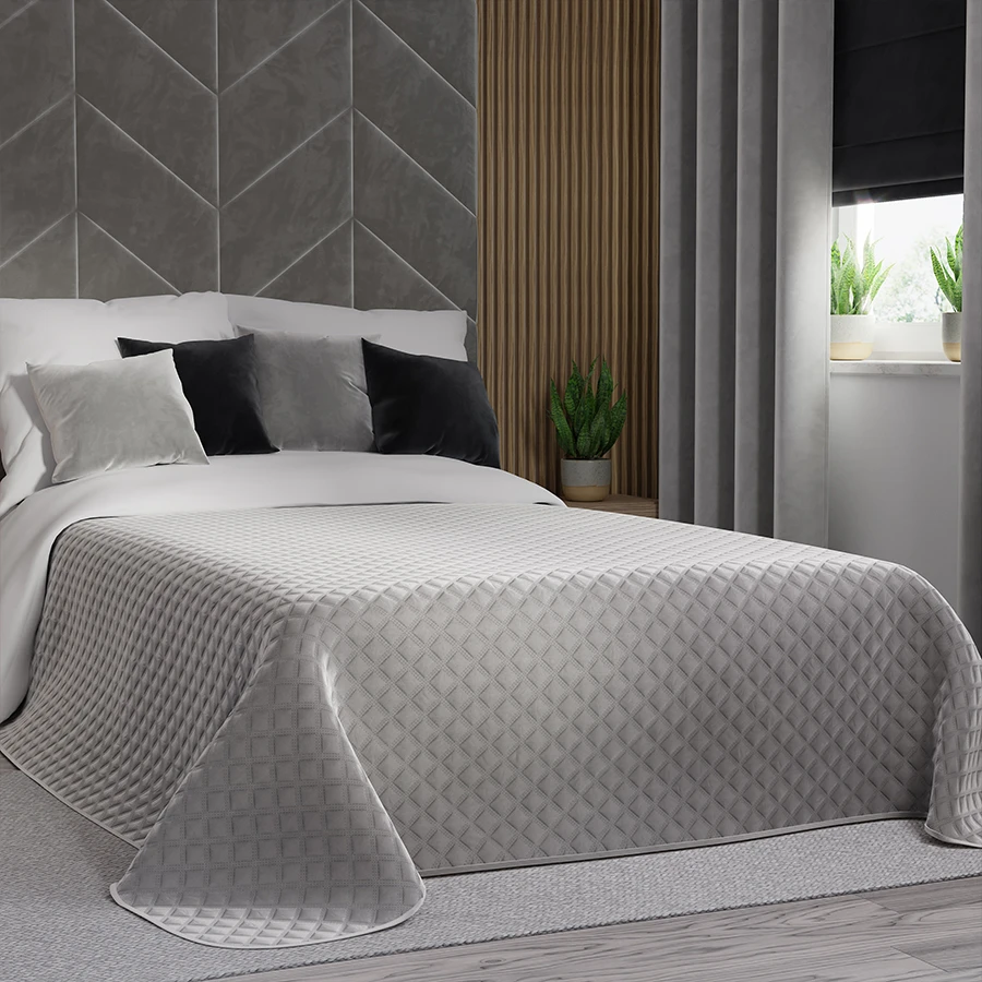 Pragniesz sypialni, która będzie nie tylko komfortowa, ale i stylowa? Narzuta dekoracyjna VELVI to doskonały wybór! Wykonana z miękkiego, przyjemnego w dotyku materiału, zapewni Ci ciepło i komfortowy wypoczynek. Jej klasyczny, szary kolor z delikatnym, geometrycznym wzorem wprowadzi do wnętrza nutę nowoczesnej elegancji. Subtelne pikowanie dodaje trójwymiarowego efektu, a staranne wykończenie świadczy o wysokiej jakości produktu. Narzuta VELVI to nie tylko praktyczny dodatek, ale również piękna ozdoba, która odmieni wygląd Twojej sypialni.
