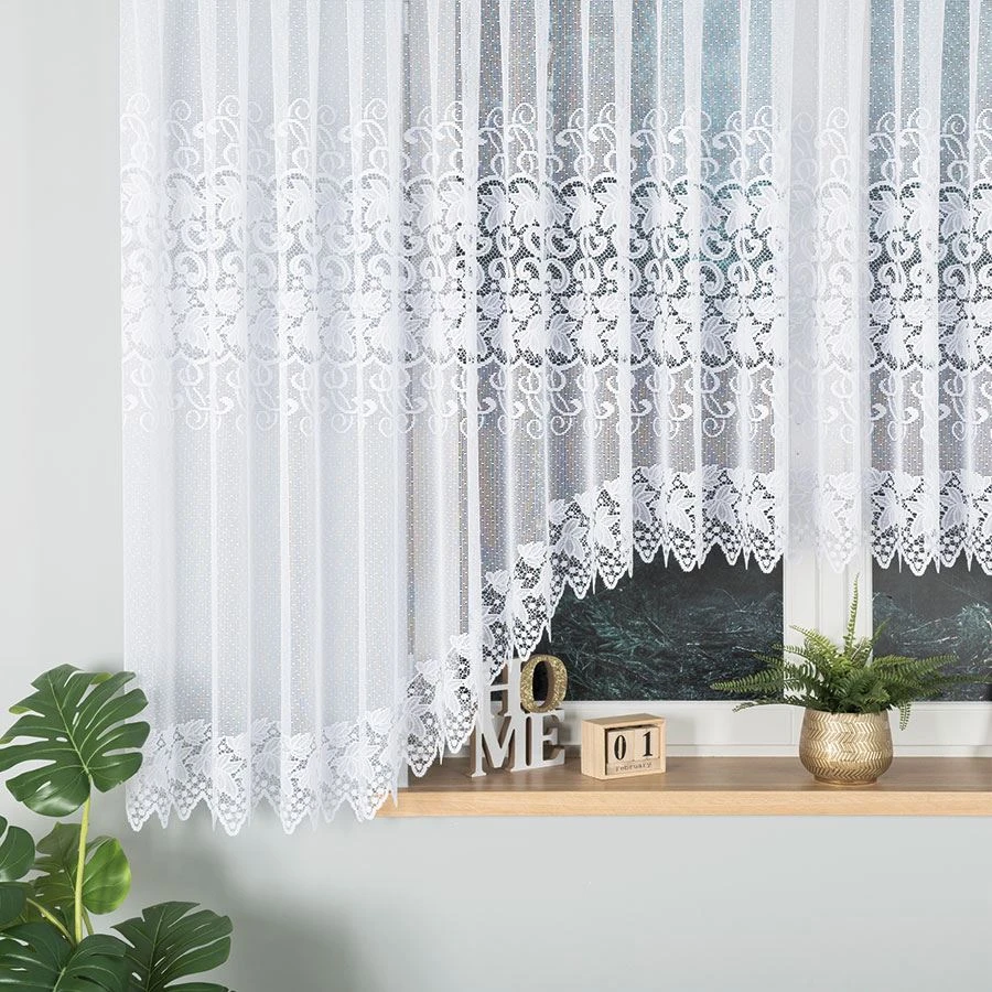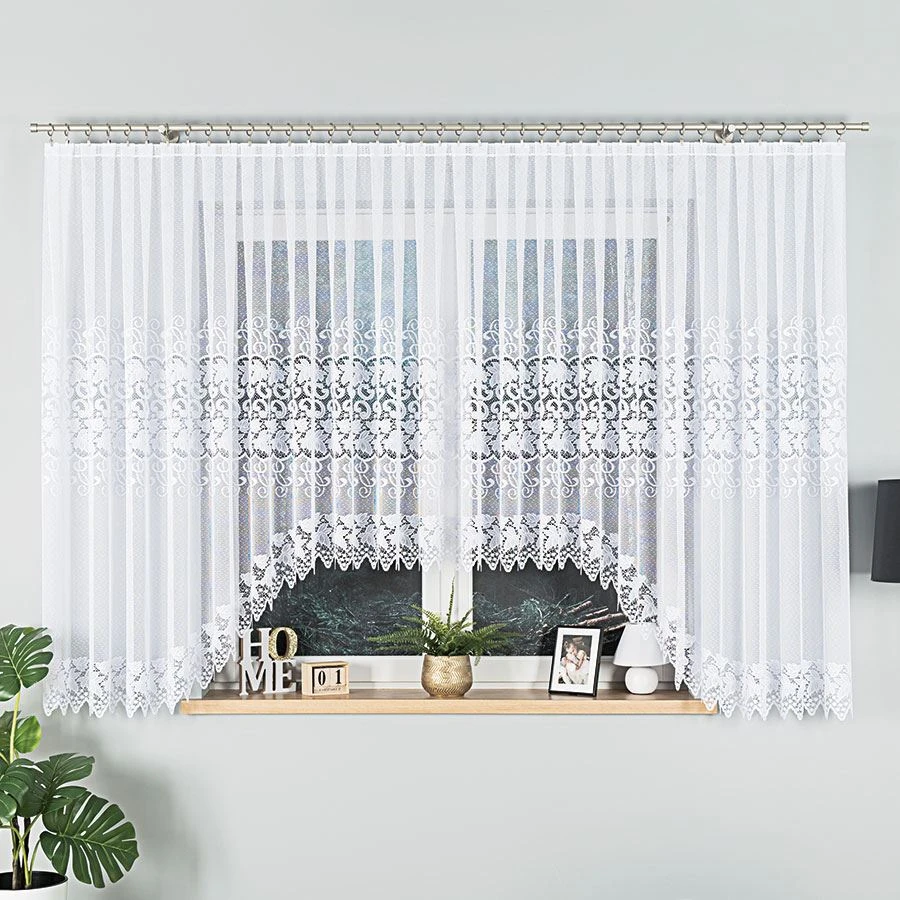 - Laserowo wykończony dół Precyzyjna krawędź podkreśla dekoracyjny charakter firany i wygląda lekko.