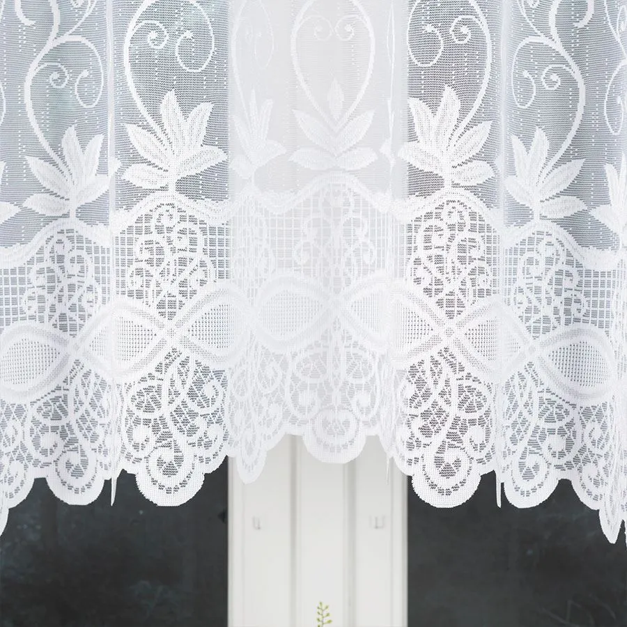 - Dekoracyjna koronka z podcięciem – dodaje elegancji i płynnej linii na oknie.