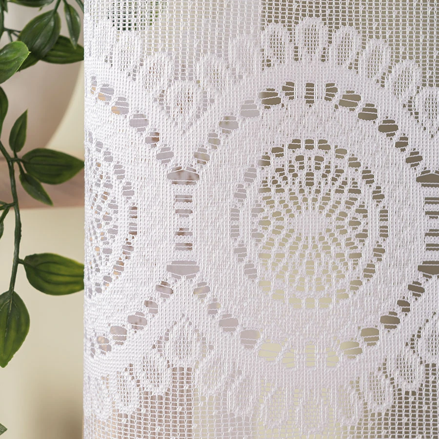 MALWINA w rozmiarze 310x80 cm to gotowa firanka żakardowa, która zachwyca subtelnym, ozdobnym wzorem i finezyjnie wyciętym podcięciem na dole. Jej krótki fason idealnie nadaje się do kuchni, jadalni lub małych okien, gdzie zależy Ci na elegancji, ale bez przesłaniania całej powierzchni. Firanka wykończona brzegiem przeznaczonym do zawieszenia na żabkach, co pozwala szybko i wygodnie udekorować okno.
