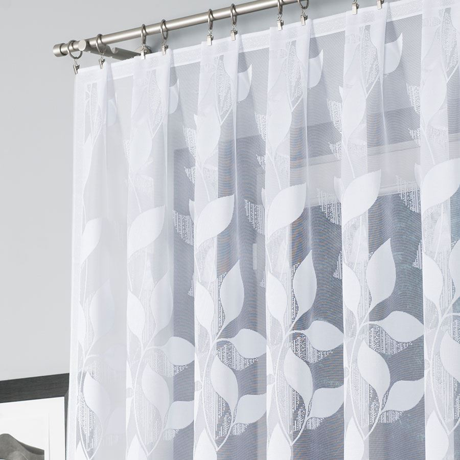 Firanka wykonana z białego żakardu subtelnie przepuszcza światło i dodaje przestrzeni lekkości. Duże liście wyglądają efektownie, a zarazem tworzą przyjemną, naturalną atmosferę we wnętrzu. To model, który pasuje zarówno do nowoczesnych, jak i przytulnych aranżacji.