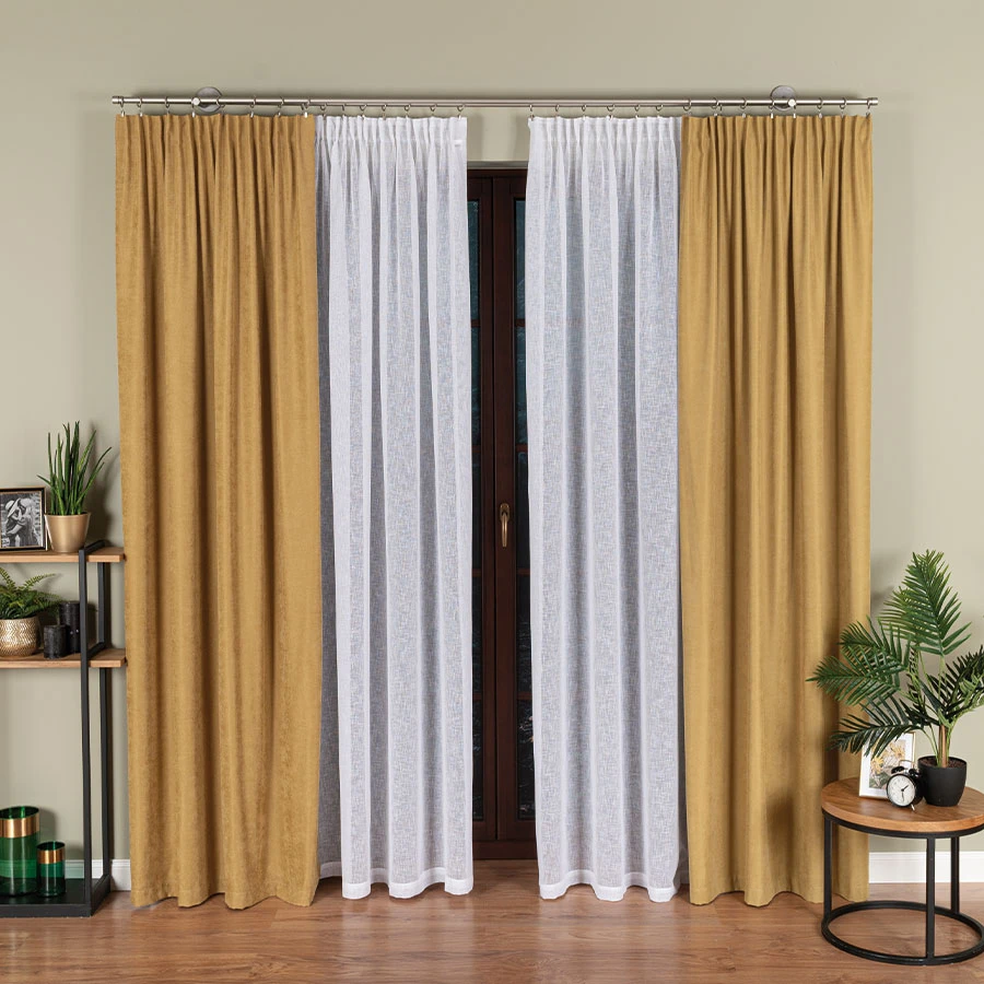 - 🛋️ Salon – idealna na karnisze o długości od 70 do 100 cm, świetnie rozjaśni pokój i stworzy przytulny klimat.