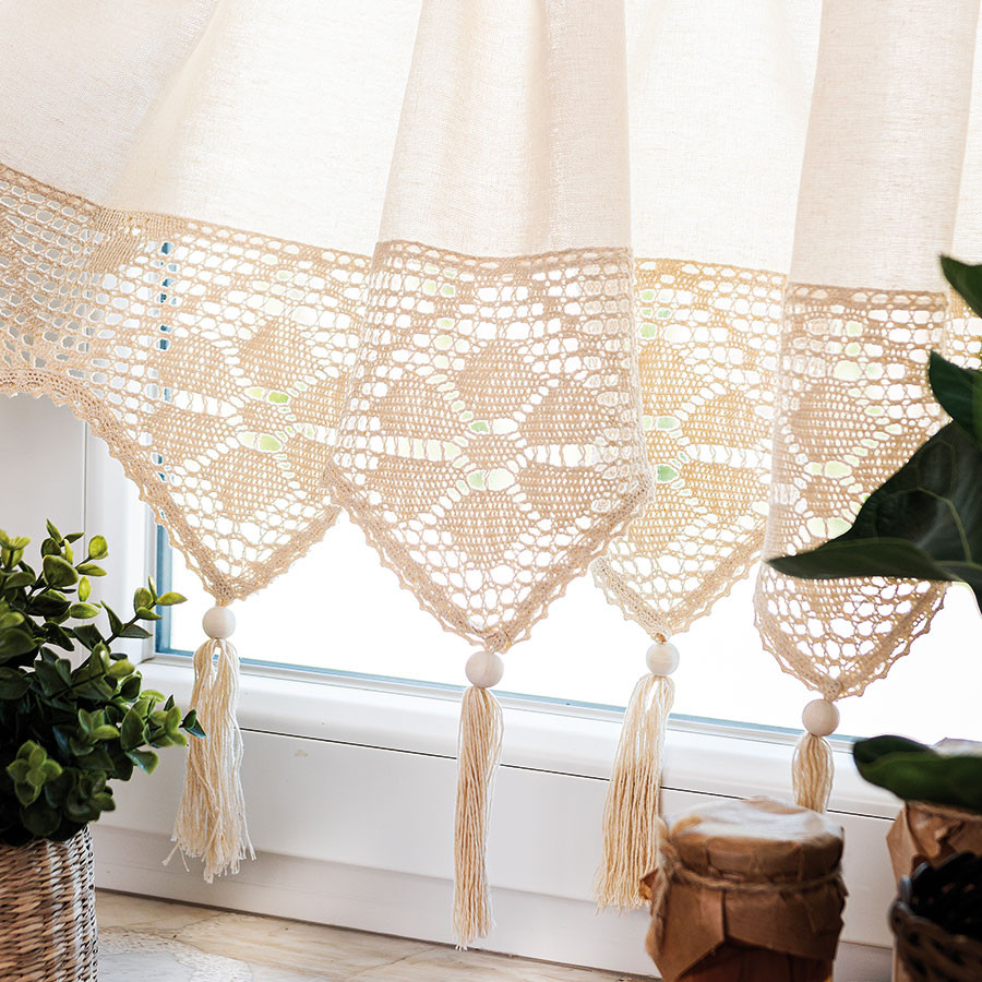 Wprowadź do swojego domu wyjątkowy klimat dzięki zazdrostce RACHELA w kremowym odcieniu o wymiarach 150x75 cm! To gotowa firanka z efektownym, ażurowym dołem, która zachwyca subtelnym wzorem i naturalną kolorystyką. RACHELA doskonale łączy klasyczną elegancję z nutą stylu boho i rustykalnego. Jej kremowy kolor pięknie rozświetla przestrzeń, a misterny ażur z frędzlami wprowadza przytulny, domowy nastrój. Wykonana z wysokiej jakości bawełny z domieszką poliestru, jest miękka, trwała i łatwa w pielęgnacji. Taki dodatek świetnie komponuje się z zielenią roślin i naturalnymi akcentami, tworząc wyjątkową atmosferę w każdym wnętrzu. 🤍