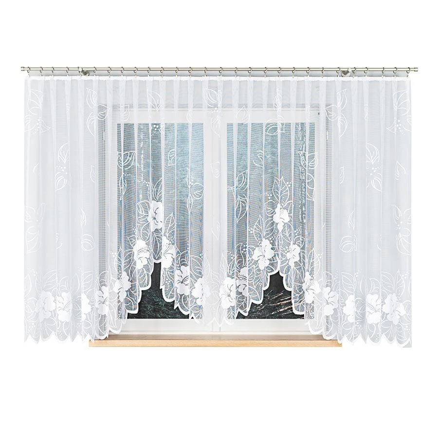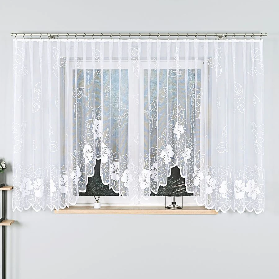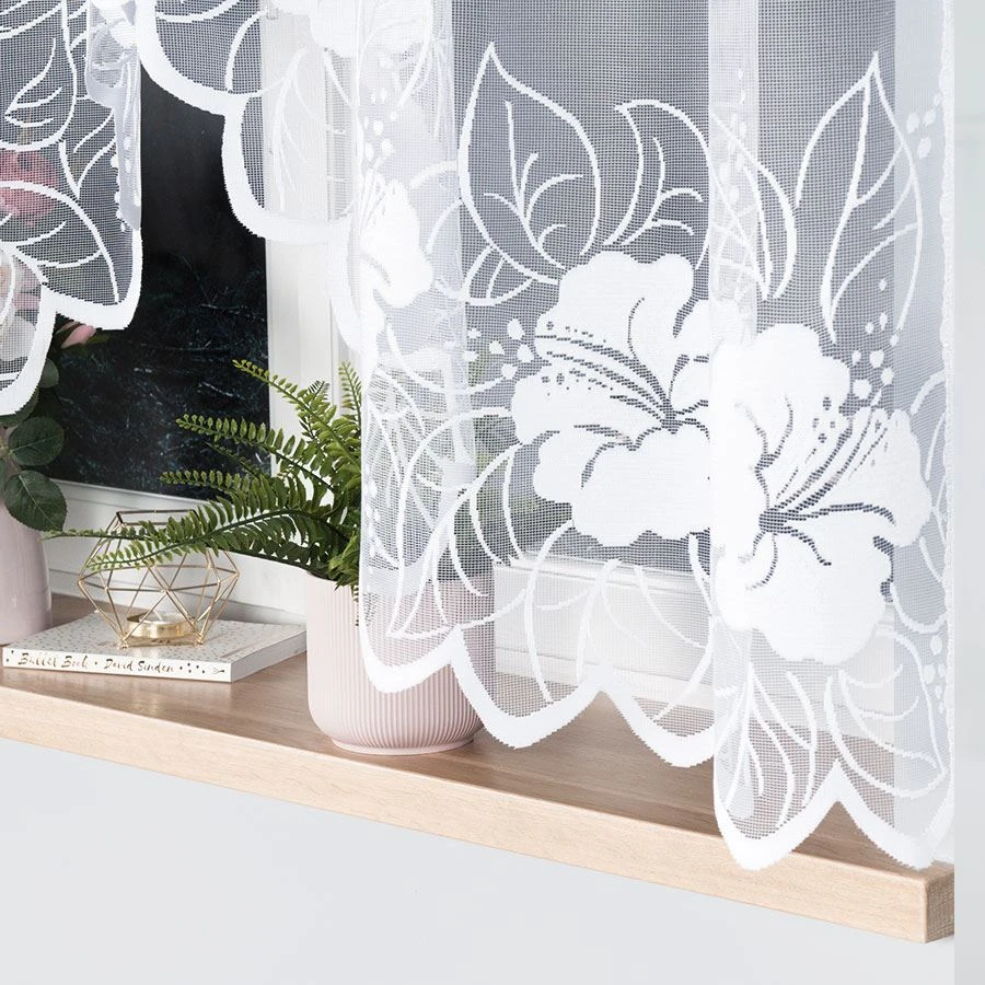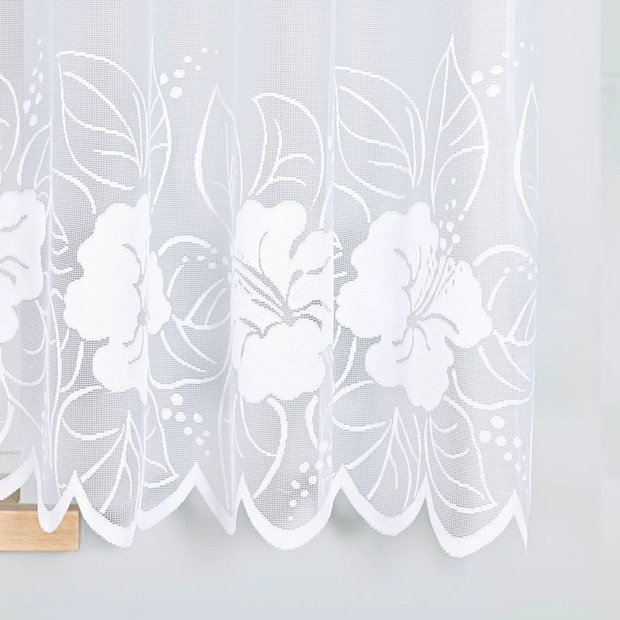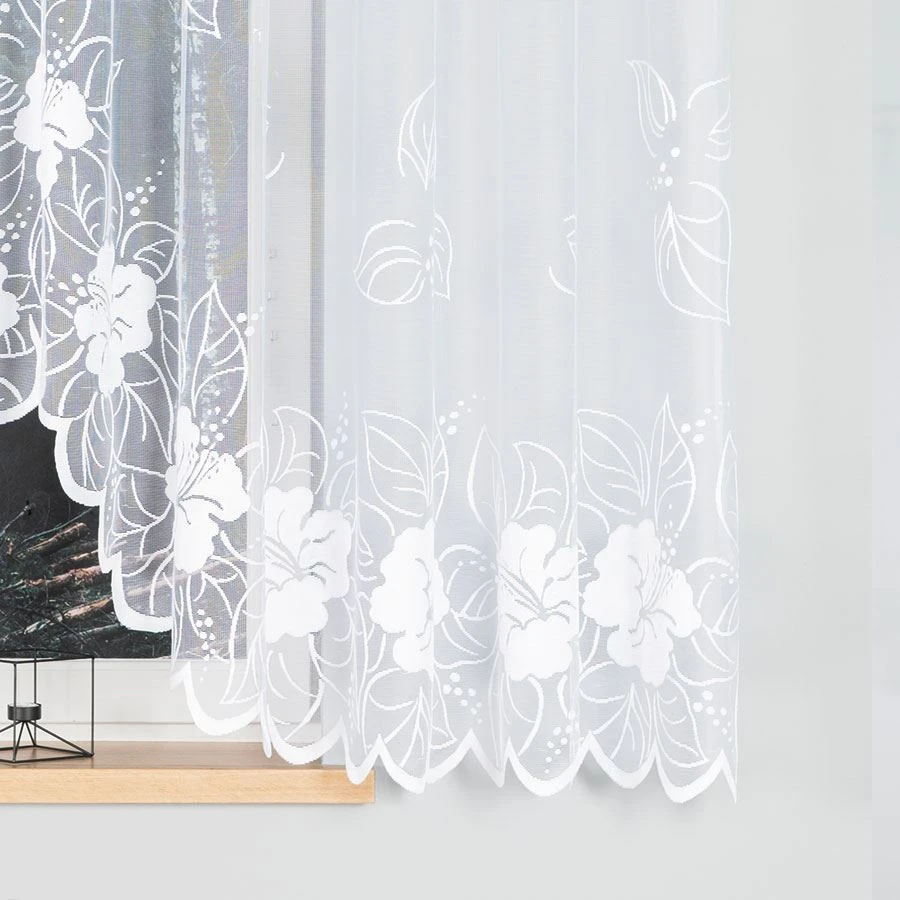 GRACJANA to gotowa firanka żakardowa o wymiarach 500x160 cm, zaprojektowana z myślą o dużych oknach w przestronnych wnętrzach. Jej największym atutem jest efektowny, duży wzór kwiatowy, który od razu przyciąga uwagę, wprowadzając do pomieszczenia świeżość, elegancję i romantyczny charakter. Ozdobne podcięcie na dole nadaje całości subtelnego wykończenia, a lekka struktura materiału pięknie rozprasza światło, rozjaśniając wnętrze i optycznie je powiększając.