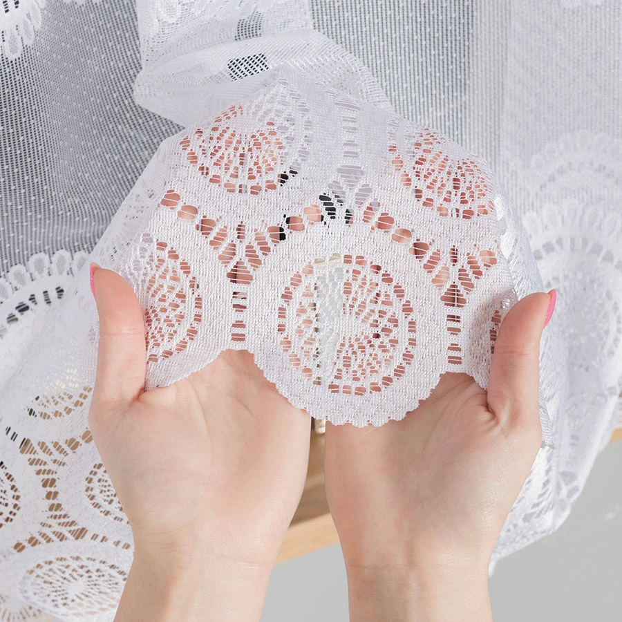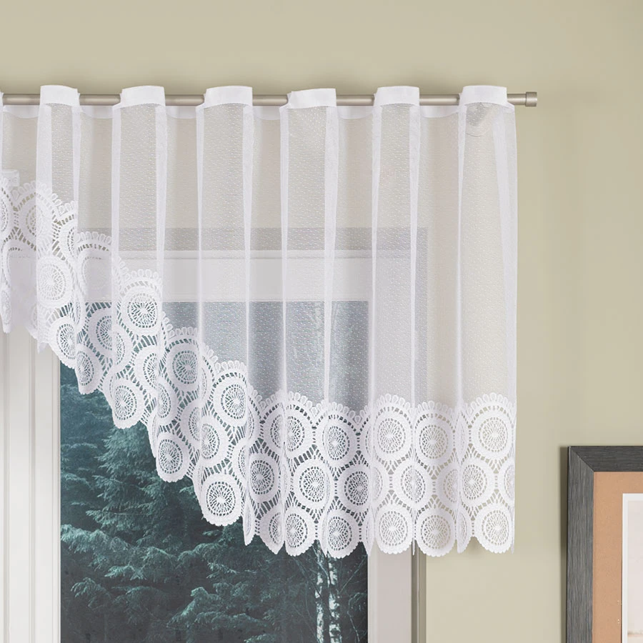 - Ażurowy wzór – dekoracyjne motywy inspirowane haftem dodają firance uroku i klasy.