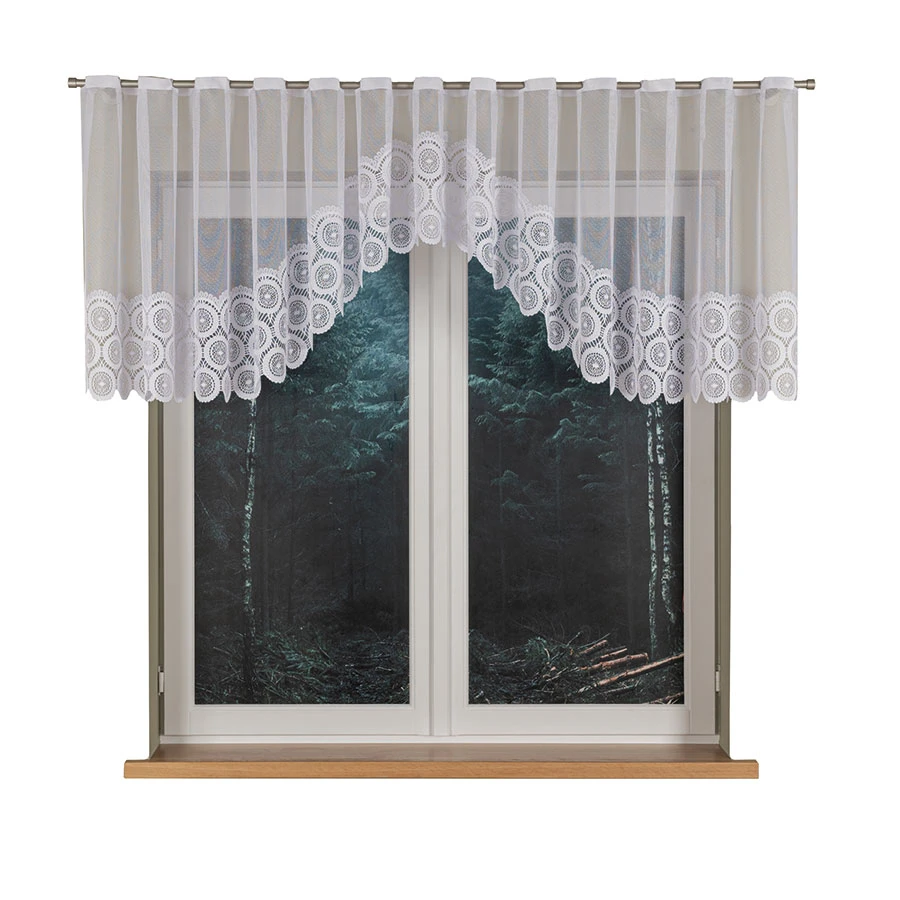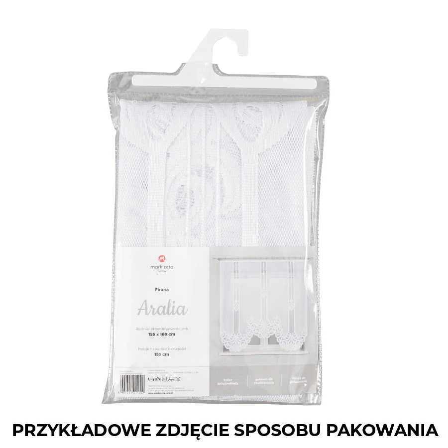 - Rozmiar 410x80 cm – idealny do szerokich, niskich okien lub jako górna firanka w komplecie z zasłonami.