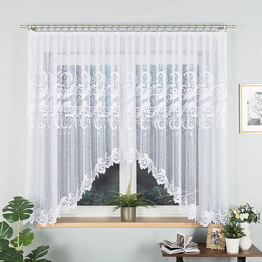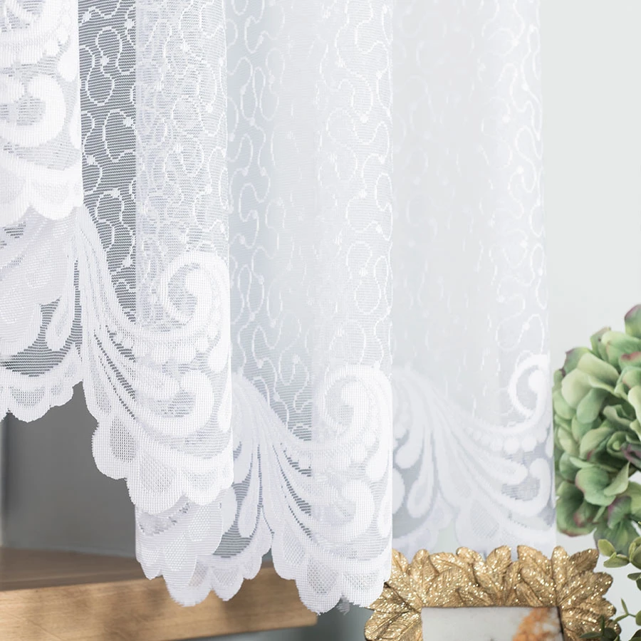 IWONA to gotowa firanka, która wnosi do wnętrza subtelność, światło i ponadczasowy wdzięk 🌿 Wykonana z białego żakardu, zachwyca ozdobnym, roślinnym wzorem, który na tle delikatnej siateczki prezentuje się wyjątkowo elegancko i lekko.