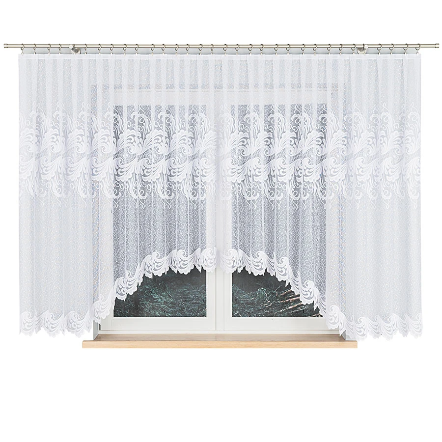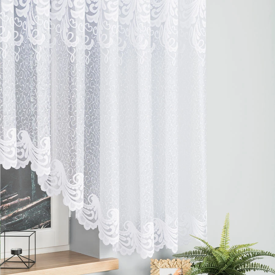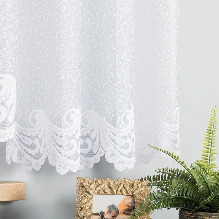 Ta klasyczna firanka będzie świetnym wyborem do salonu, sypialni, jadalni czy domowego gabinetu. Biały kolor i żakardowy wzór ornamentów dobrze komponują się zarówno z jasnymi, jak i ciemniejszymi dodatkami, tworząc spójną, elegancką oprawę okna.