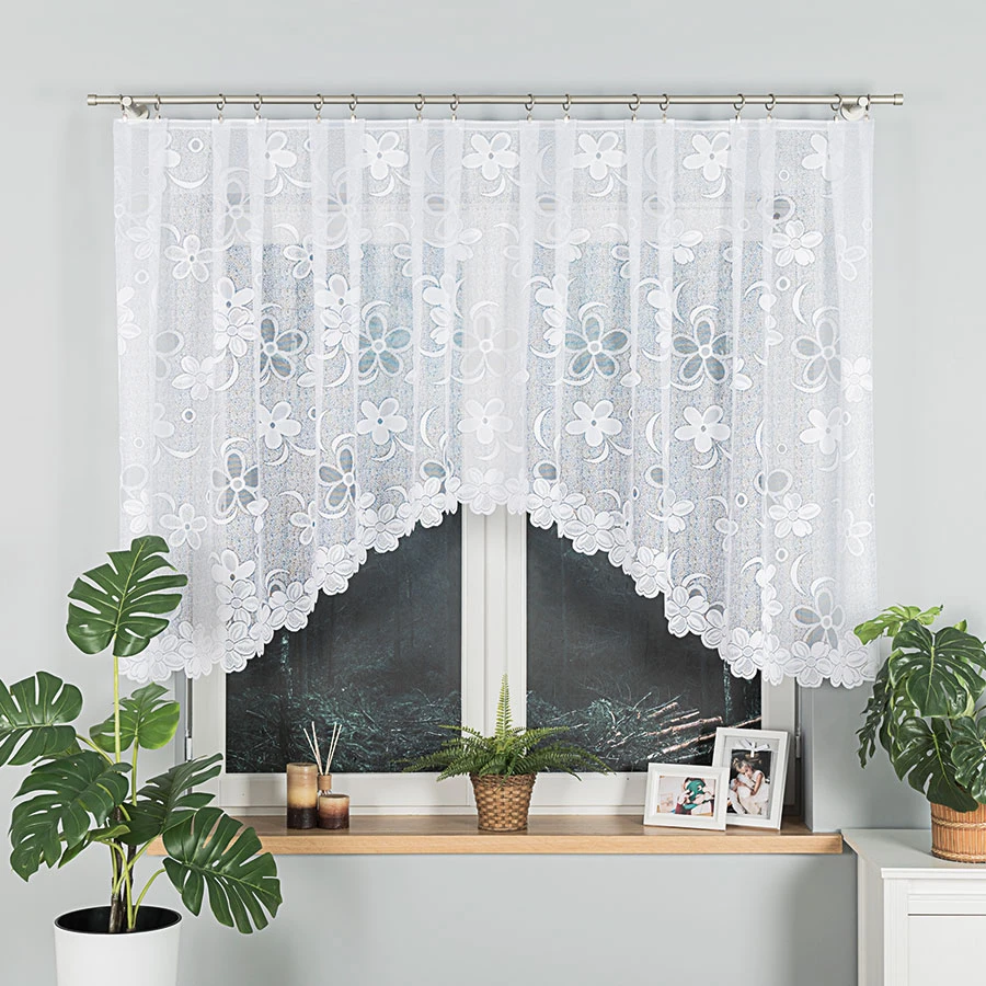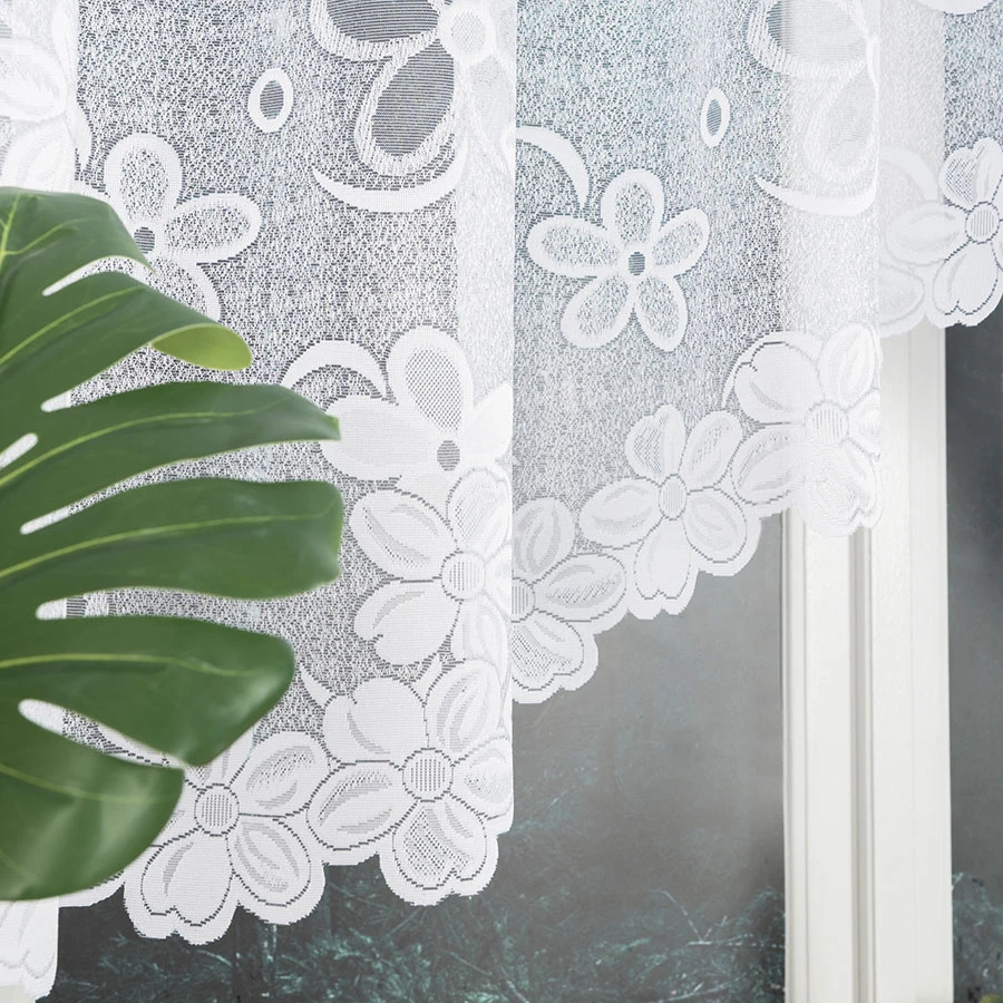 Rozmiar 300x130 cm i lekka dzianina żakardowa sprawiają, że firanka RENATA dobrze wygląda w kuchni, jadalni, salonie czy sypialni. Kwiatowy motyw ociepla przestrzeń, a biała kolorystyka nie przytłacza – subtelnie filtruje światło i podkreśla czystość aranżacji.