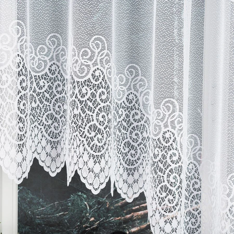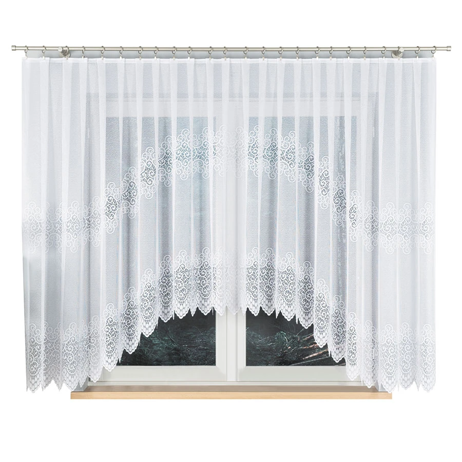 Firanka gotowa żakardowa VIOLETTA to klasyczna propozycja do eleganckiej oprawy okna, która łączy ponadczasową biel z dekoracyjnym akcentem. Subtelne ornamenty oraz efektowne podcięcie na dole przyciągają wzrok, zachowując przy tym lekkość i harmonię aranżacji.
