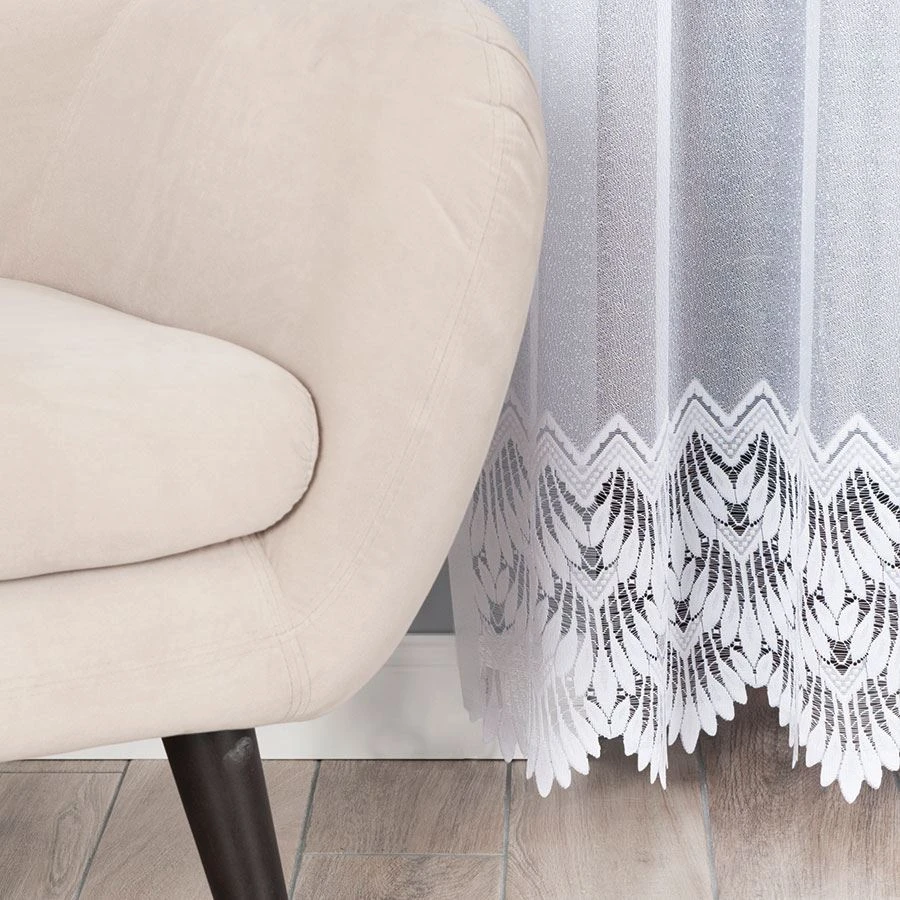 Gramatura:100g/m2Raport:10,5cmTyp/Rodzaj:żakardKolor:białySkład:100% Poliester