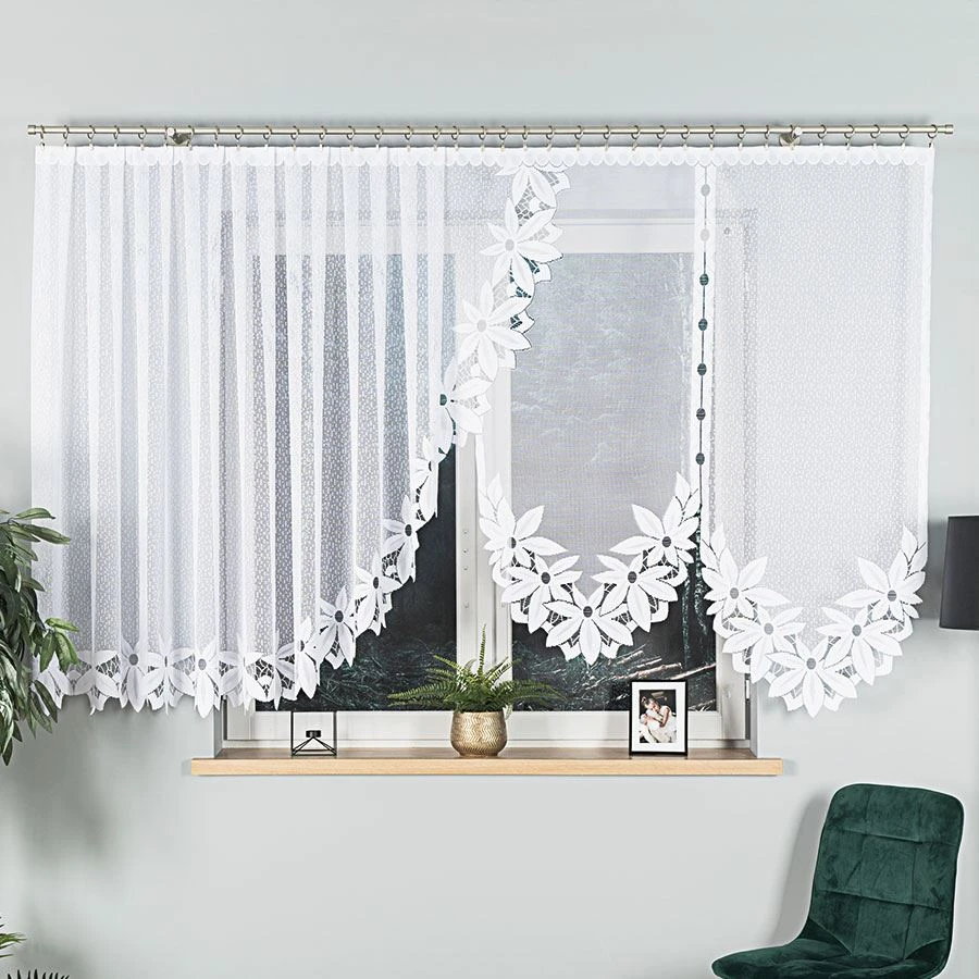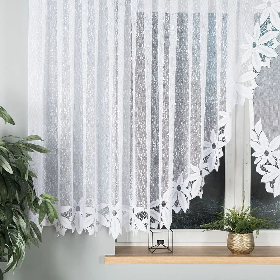 Dzięki swojej optymalnej wysokości i dużej szerokości, firanka JADWIGA pięknie ozdabia nawet nieco większe okna, wprowadzając do wnętrza jasność, harmonię i subtelny charakter. To idealna propozycja dla tych, którzy cenią ponadczasowe rozwiązania z nutą romantyzmu 💕