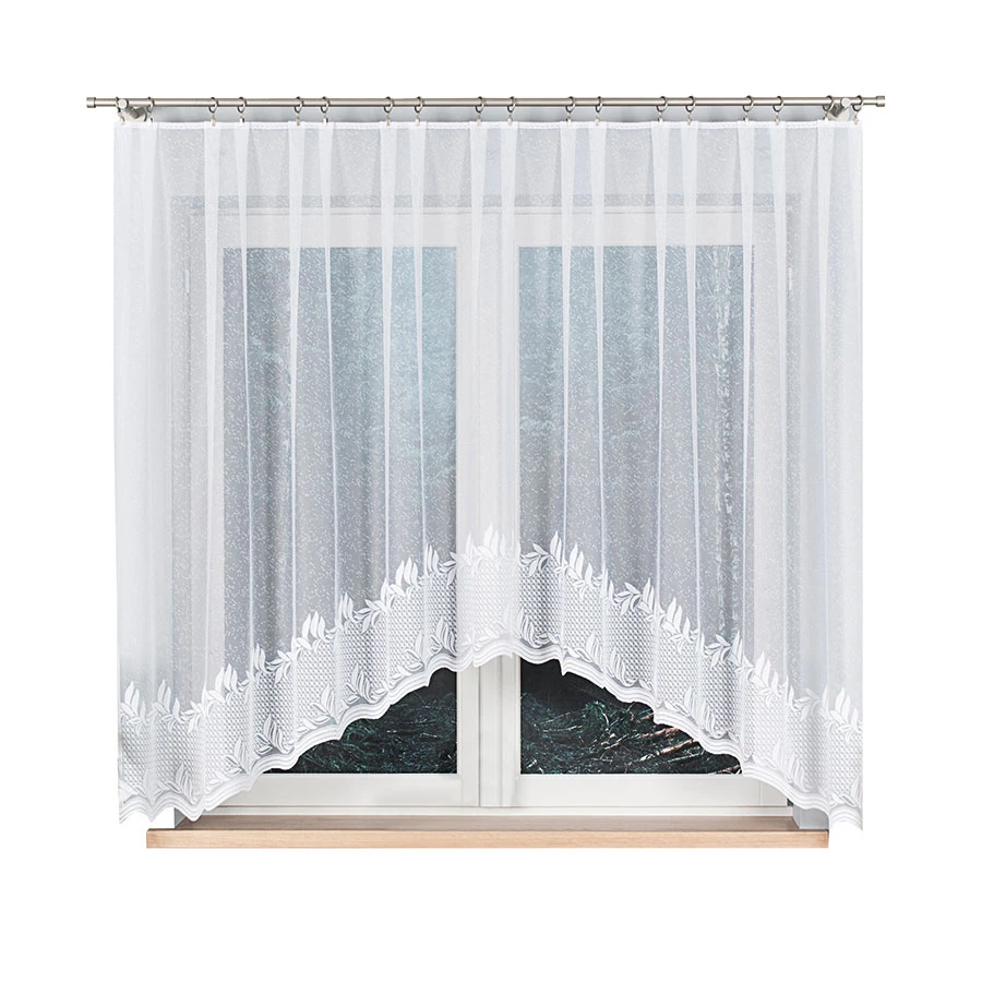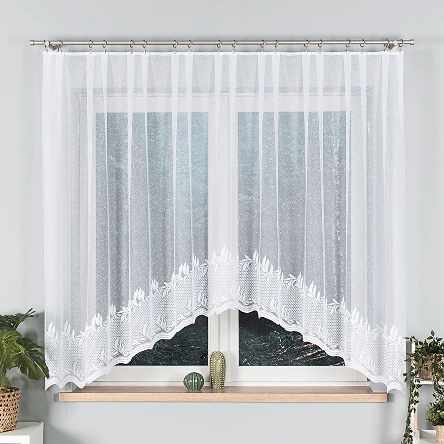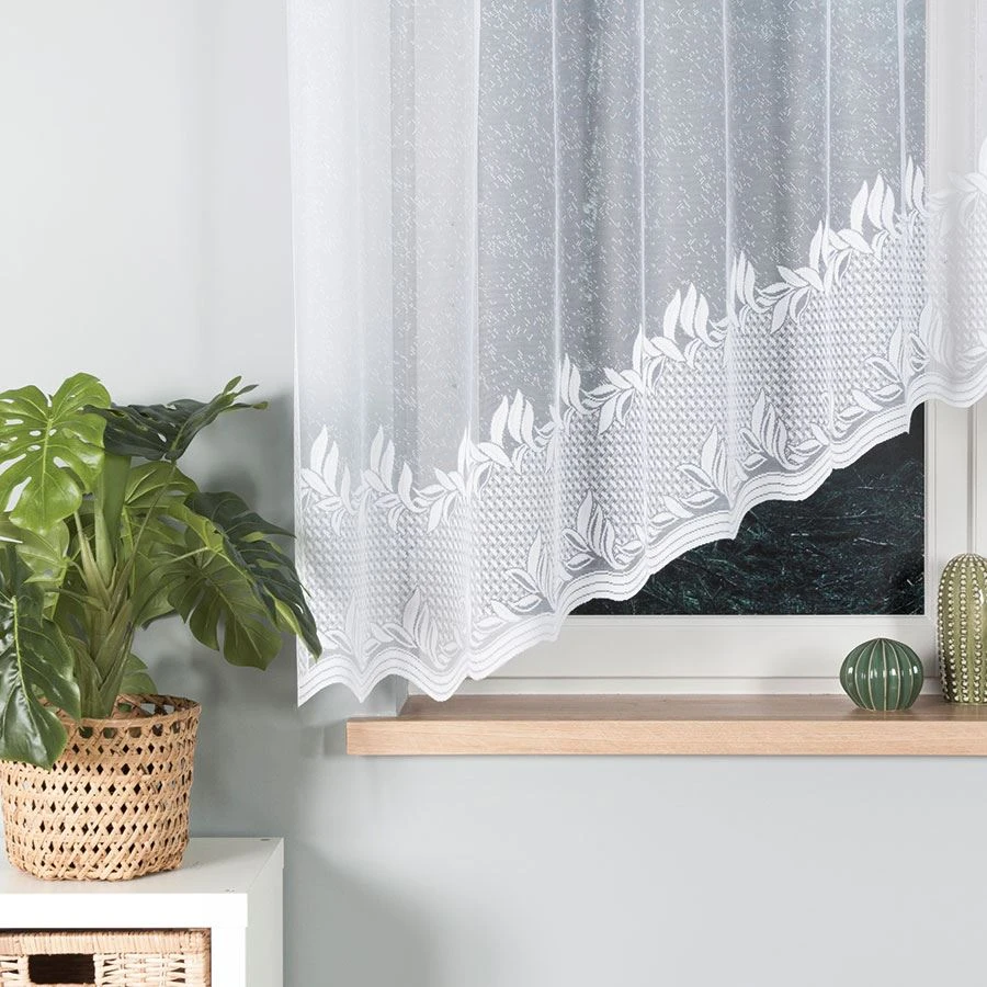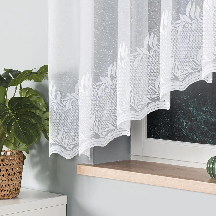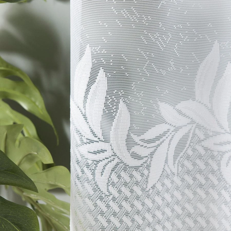 Firanka KAMELIA 310x160 cm – biały żakard z liściastym wzorem i podcięciem
