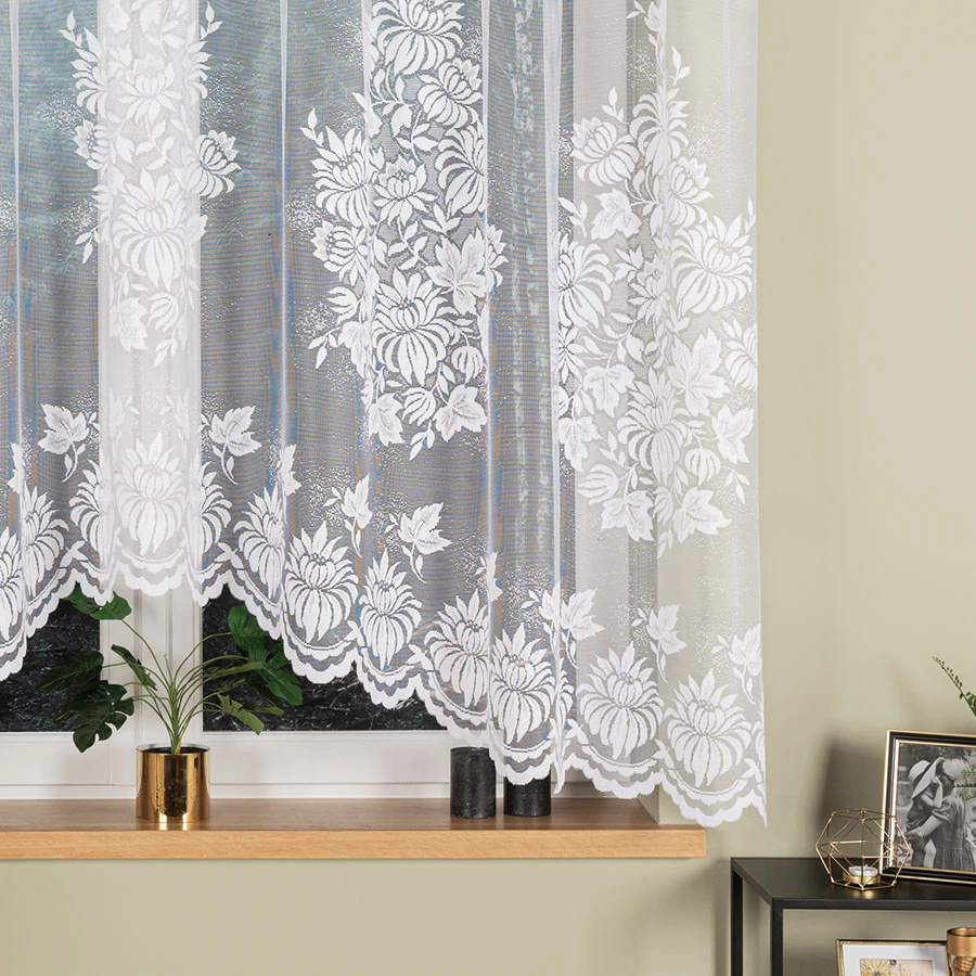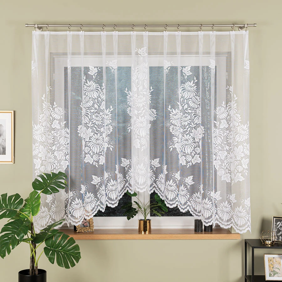 - ✔ Podcięcie u dołu – dekoracyjna linia w formie fali podkreśla elegancki charakter firanki. 🌊