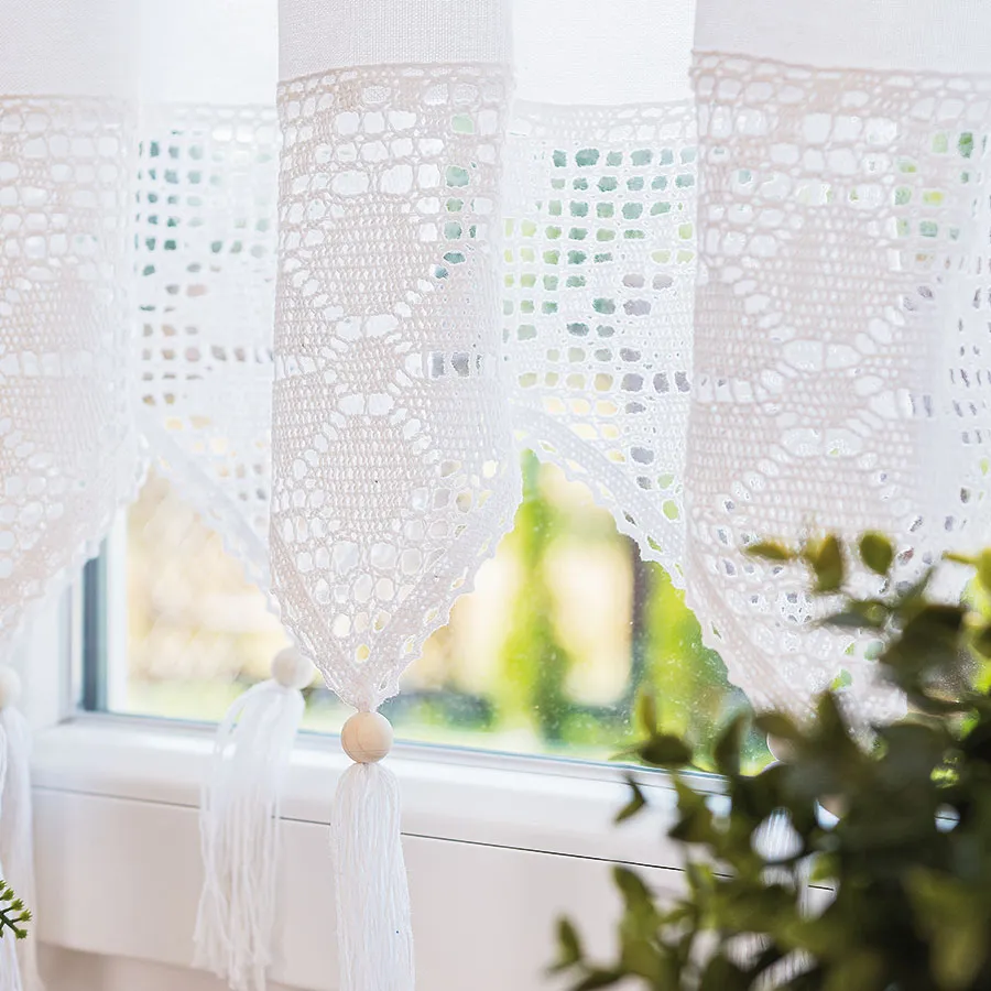 Wprowadź do swojego domu wyjątkową lekkość i świeżość dzięki zazdrostce RACHELA w śnieżnobiałym kolorze o wymiarach 150x45 cm! Ta gotowa firanka zachwyca misternym, ażurowym wykończeniem z delikatnymi frędzlami, które podkreślają styl boho i vintage. Biały odcień pięknie rozświetla każde wnętrze, optycznie je powiększa i wnosi poczucie czystości oraz harmonii. Zazdrostka doskonale komponuje się z zielenią roślin i dodatkami z naturalnych materiałów, tworząc przytulną, a zarazem elegancką atmosferę. Idealnie sprawdzi się w kuchni, jadalni czy salonie, gdzie liczy się subtelna dekoracja i praktyczność. 🤍