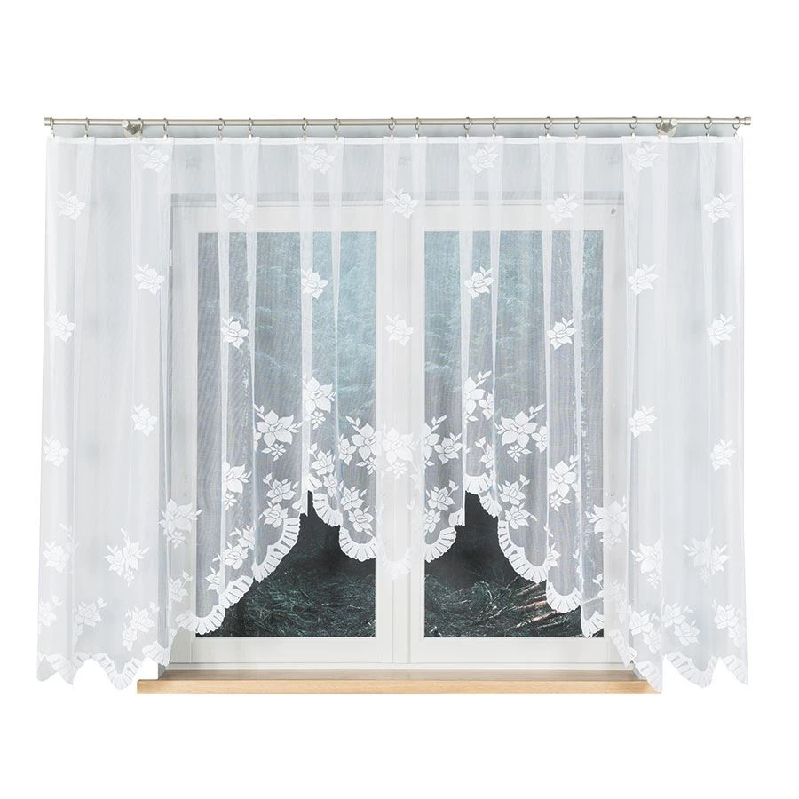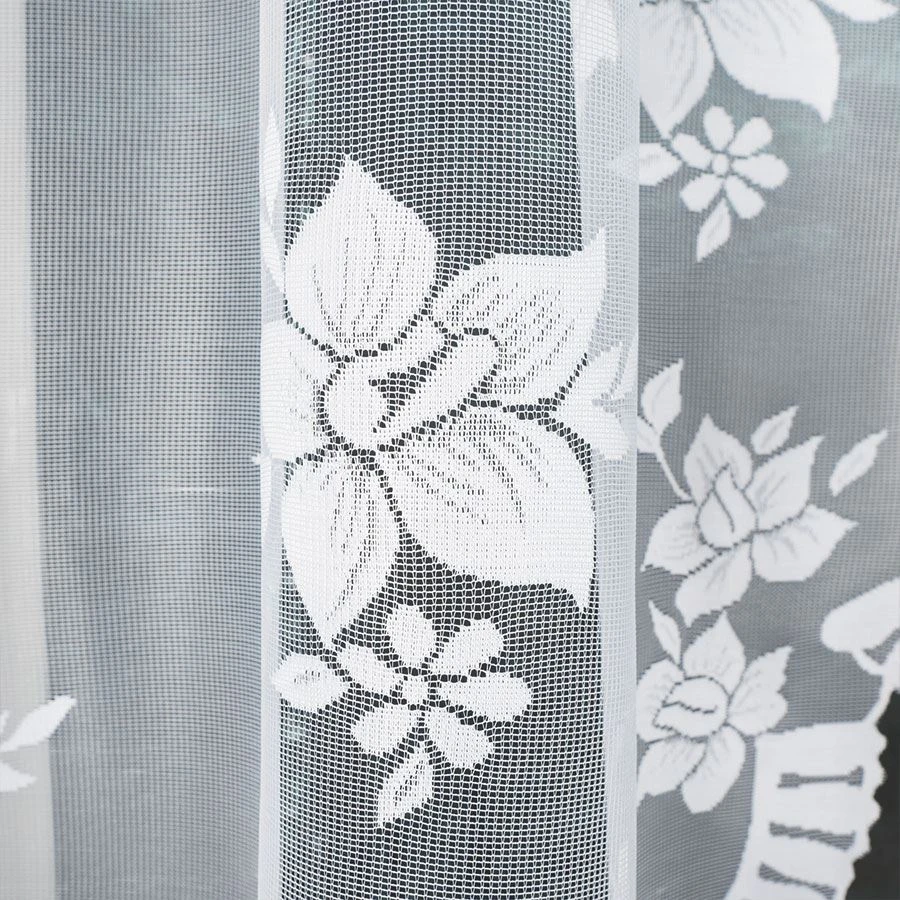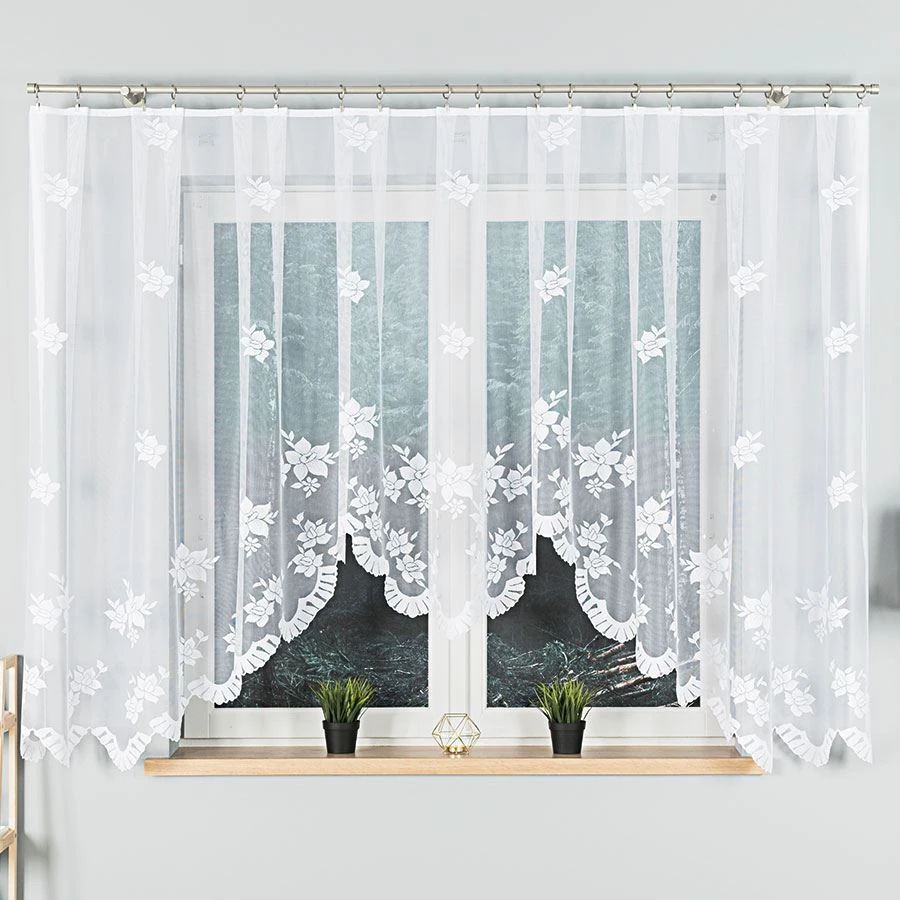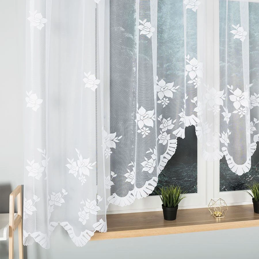 Firanka IRENA 420x160 cm – biały żakard z kwiatowym wzorem i podcięciem