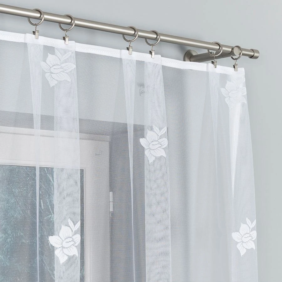 - Zawieszanie na żabki – gładki górny brzeg umożliwia szybkie przypięcie firanki do żabek na karniszu.