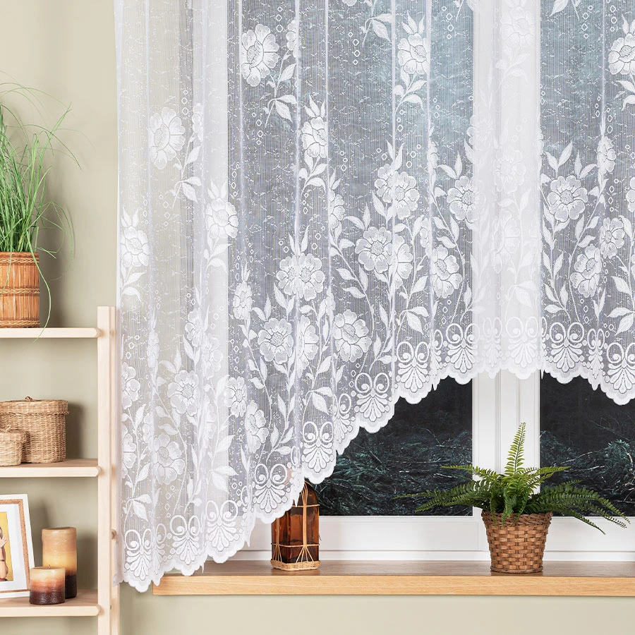 MONIKA to firanka, która dodaje klasy i światła każdemu wnętrzu. Jej florystyczny wzór i eleganckie wykończenie sprawią, że Twoje okno stanie się ozdobą całego pomieszczenia 🌿✨