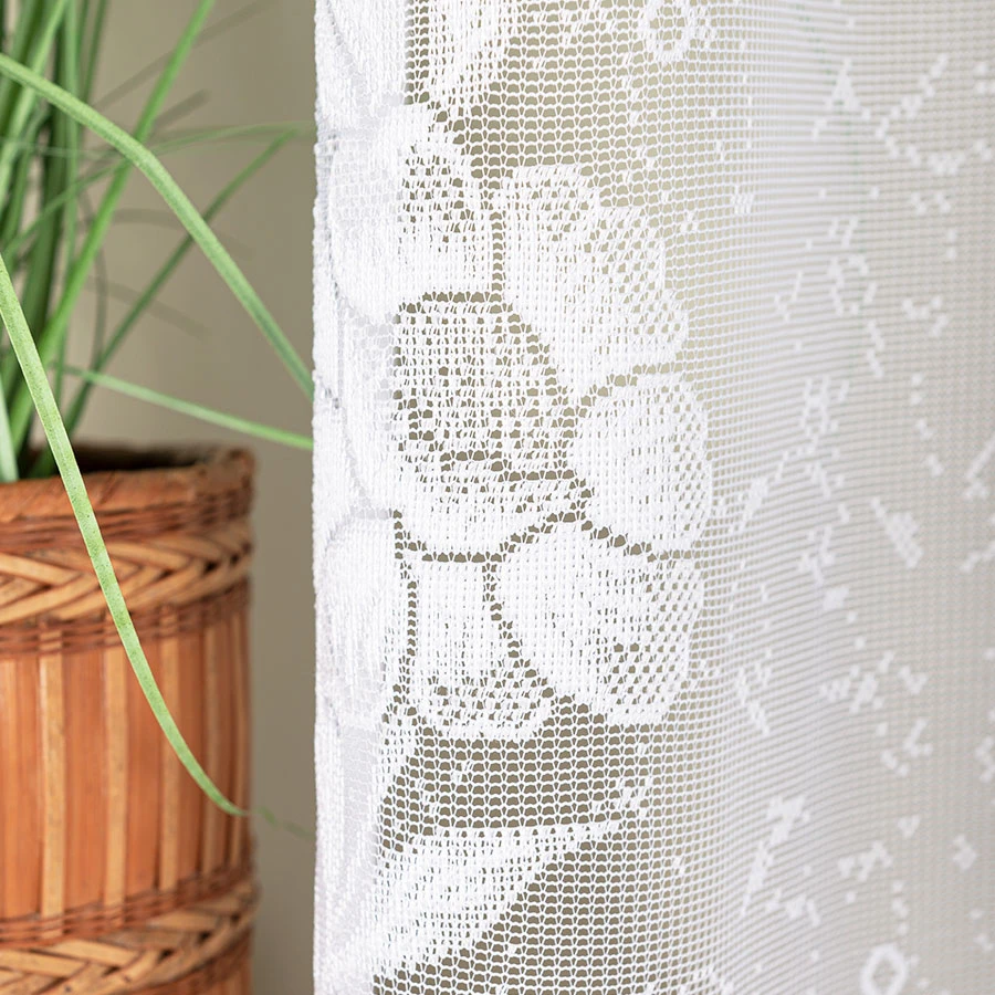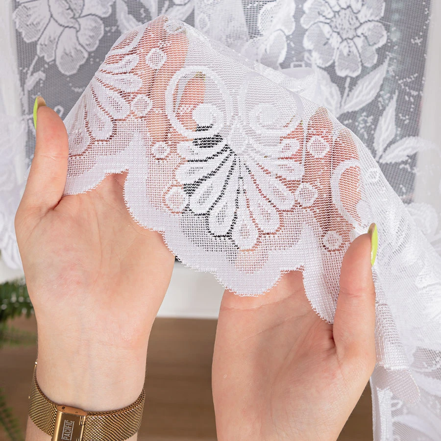Wykonana z wysokiej jakości białego żakardu, firanka MONIKA zachwyca bogatym, roślinnym motywem, który rozciąga się od dolnej części ku środkowi, tworząc efektowne tło dla naturalnego światła ☀️ Wzór jest wyrazisty, ale nie przytłacza – idealnie wyważony pod względem gęstości i formy.